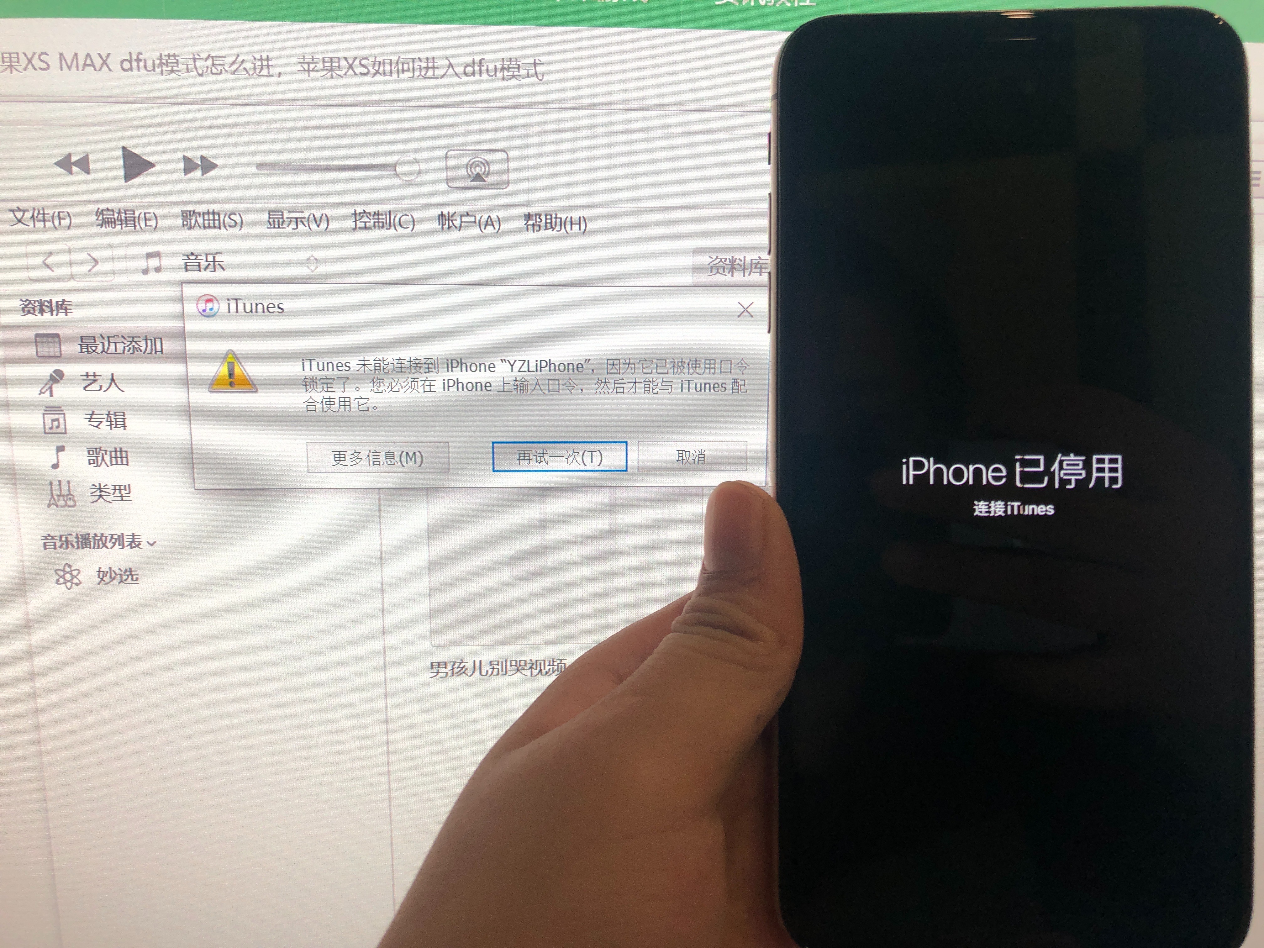 手机型号xsmax 由于更改新的锁屏密码但习惯使用之前的密码导致总按错密码,手机锁死,不得不使用itunes更新恢复;更新后开机显示向上轻扫以恢复,输入正确密码两次之后恢复一段时间得到的是恢复失败,已经循环好多次了都是数据恢复失败,请问如何处理