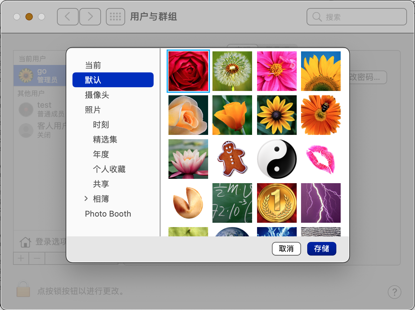 无法变更 macOS 的用户头像。