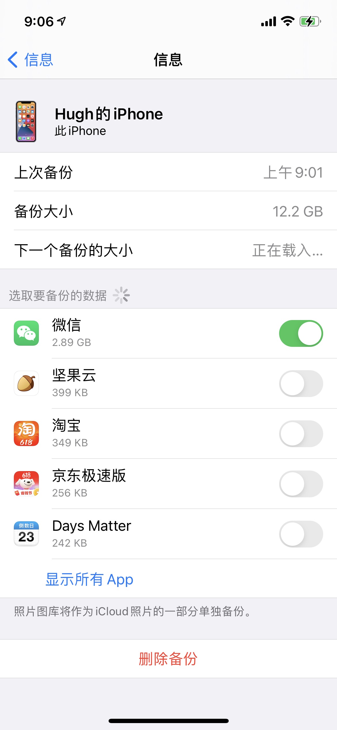 这个iCloud是怎么回事啊,为啥备份有12g啊,我只备份一个2g大小的微信也能12g。。