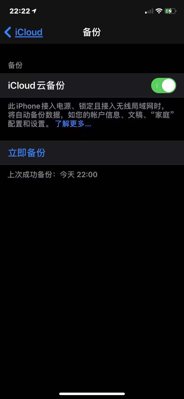 3. 解锁设备,点击设置-账号-iCloud-iCloud云备份-点击立即备份。芝华塔尼奥制作