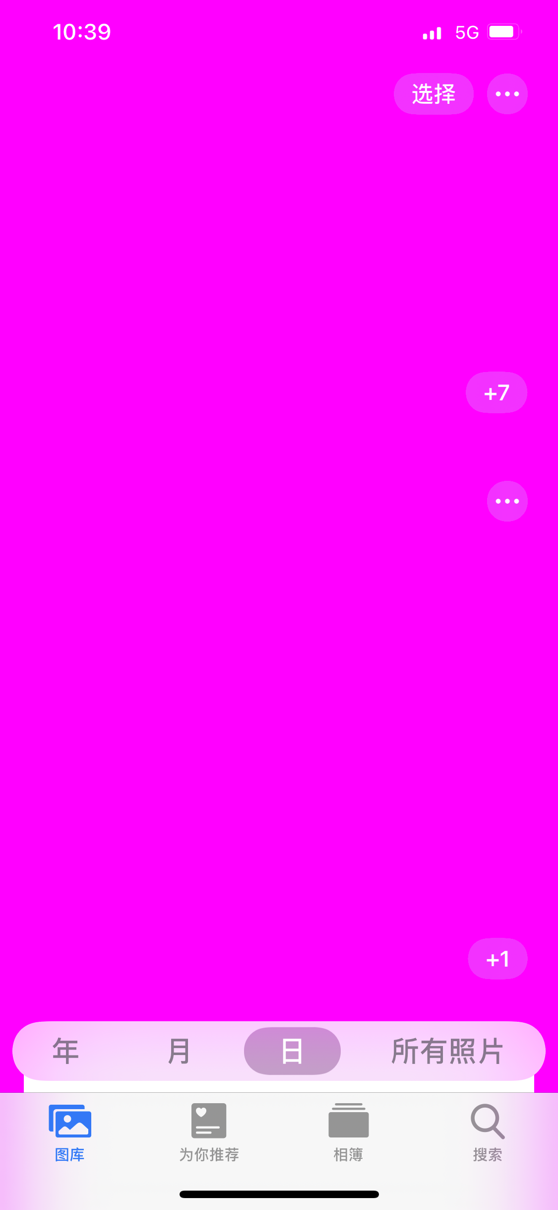 3、打开相册有时候直接闪退,有时候滑动照片的时候闪退,大概率会出现紫色的图片。
