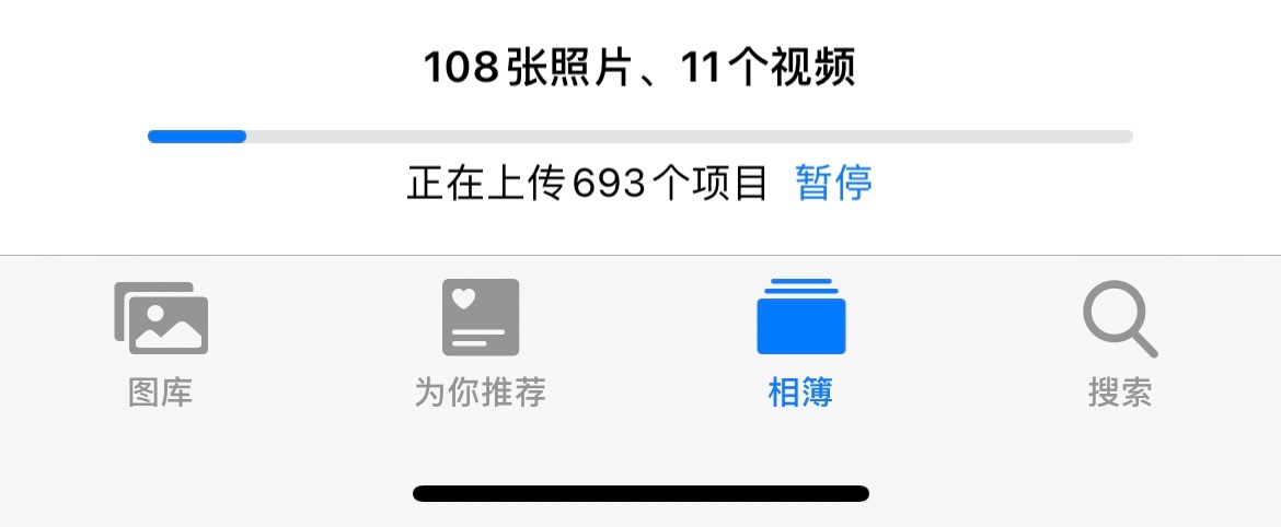 照片怎么找都找不到,而且相册里一直显示正在上传项目,但是没有动。照片也没有回来。