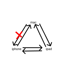 使用过三台设备进行测试,macimini、ipad、iphone,总共六个方向,除了mac的东西复制到iphone,其他都可以。