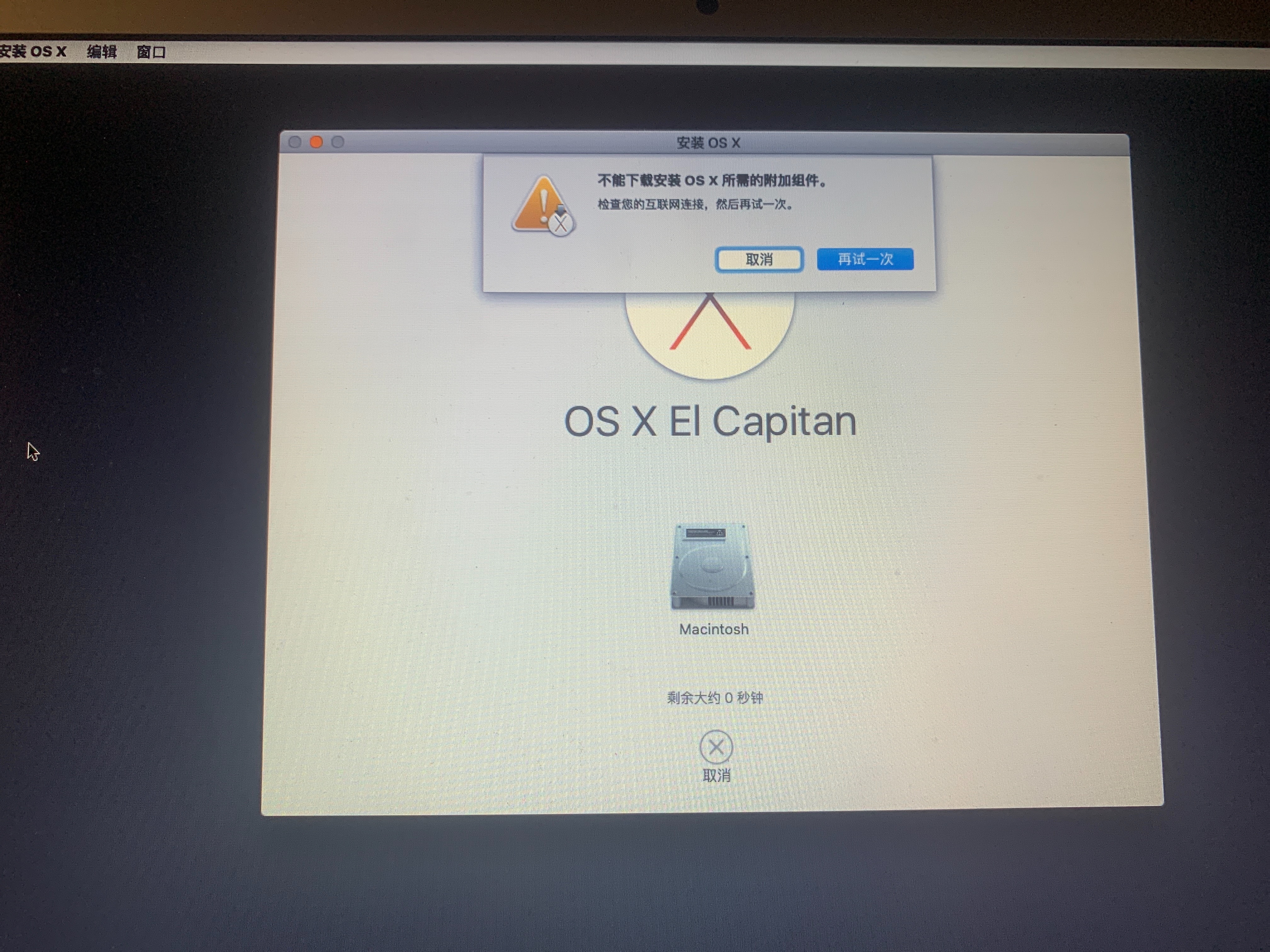 互联网恢复模式下重装出厂系统显示不能下载,互联网已连接