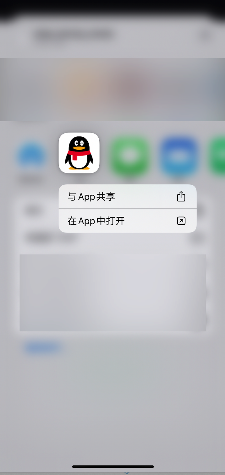 第三步 长按“QQ”图标,并选择在 “App内打开”,如下图所示: