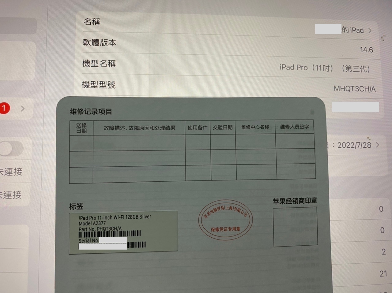 为什么刚刚到手的iPad型号不和保修单不一致?