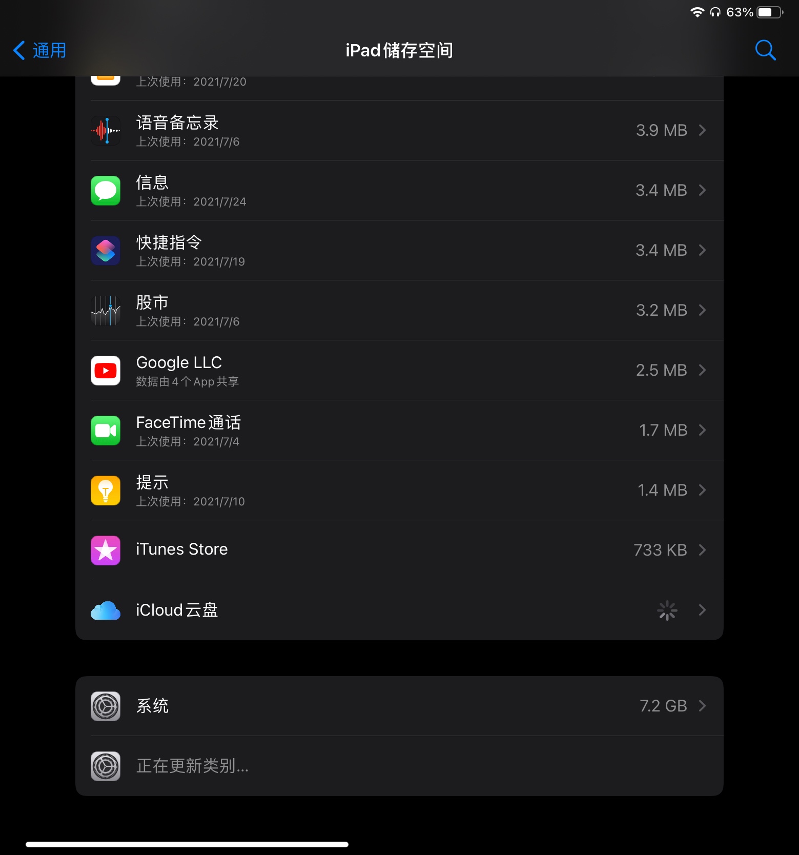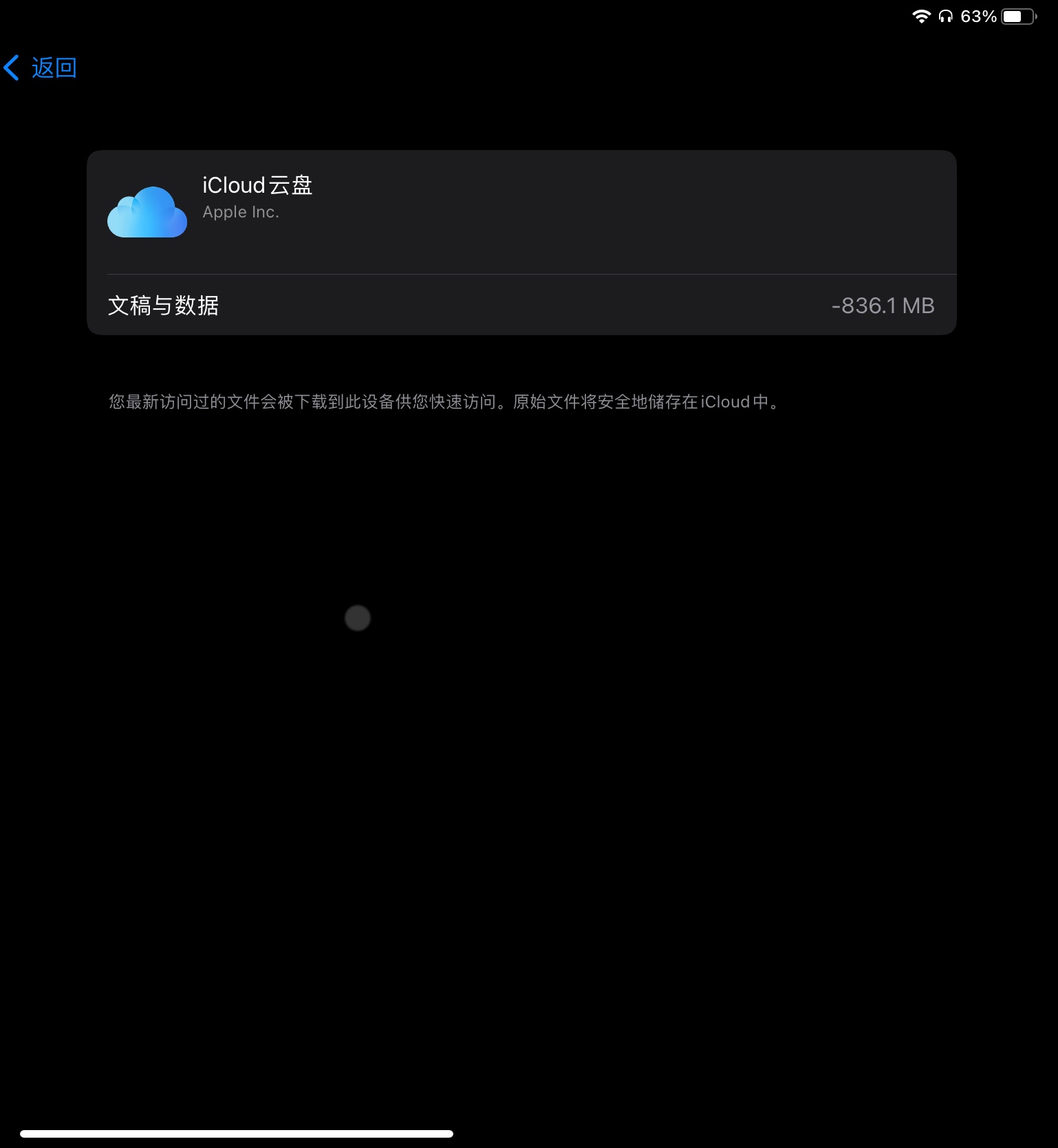 iCloud云盘一直转圈圈,导致iPad存储空间一直无法正常显示的问题。最新iPadOS系统,曾尝试重启,重置设备,退出AppleID并重新登陆,但是都无法解决问题;只有在关闭iCloud后才能正常显示。请问有其他的同学遇到这种情况吗?有什么解决的方法吗?