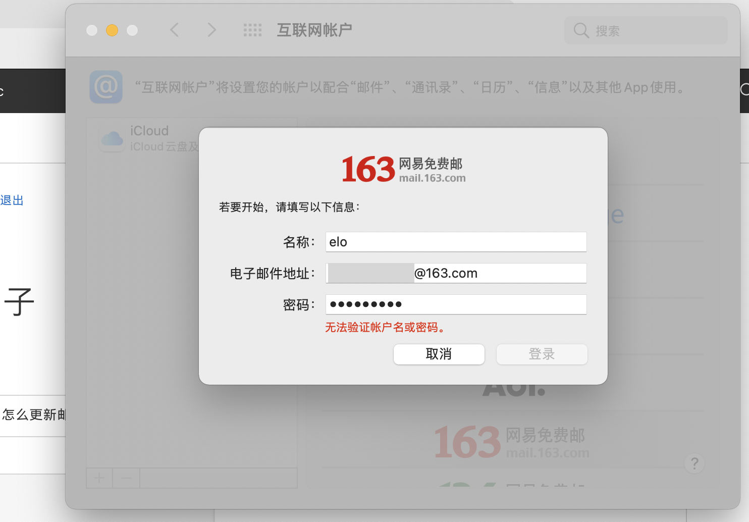 Mac Book Air M1 怎么更新邮箱,为什么一直收不到邮件?在系统偏好设置里进互联网输入邮箱密码也验证不成功