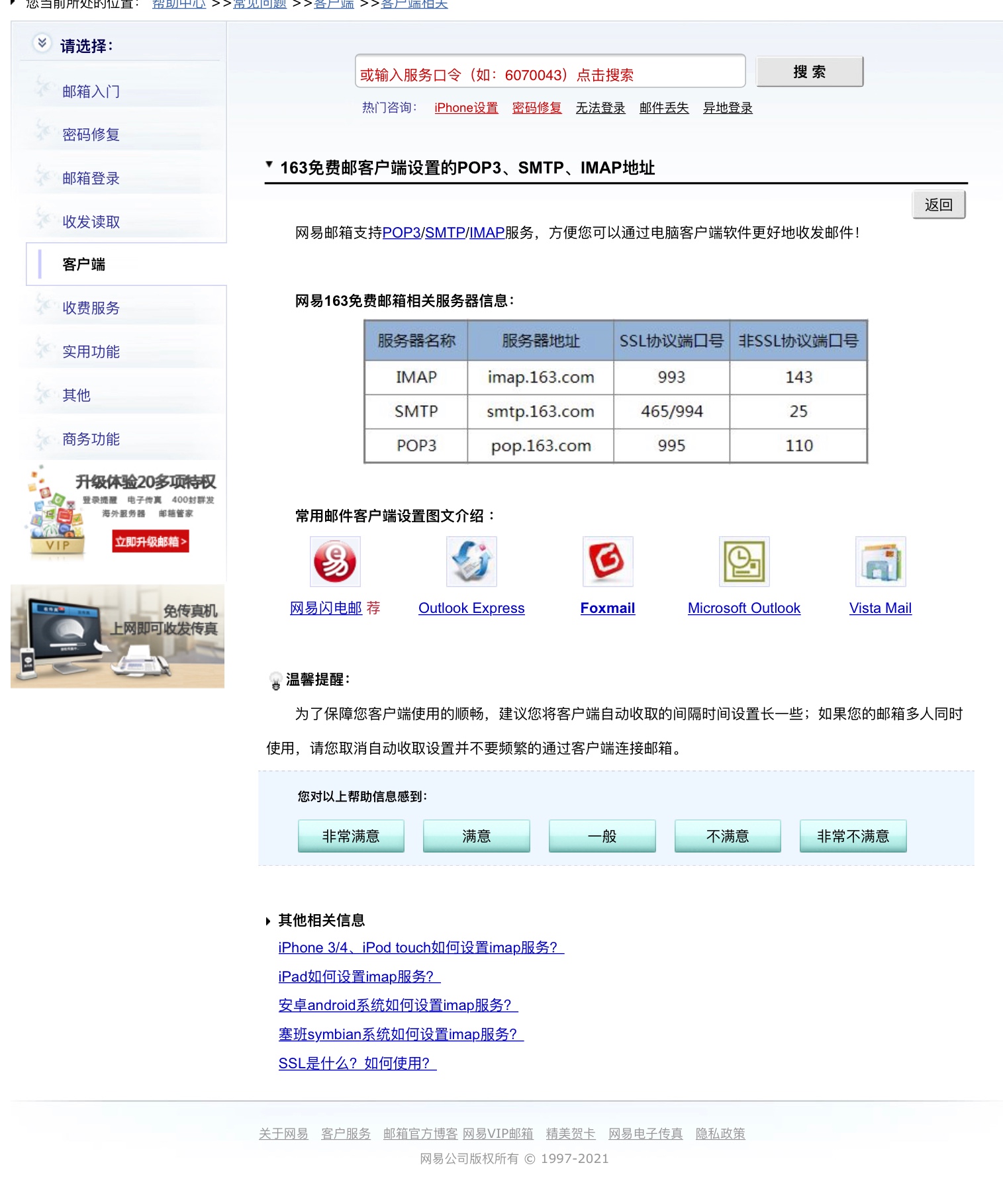 163免费邮客户端设置的POP3、SMTP、IMAP地址