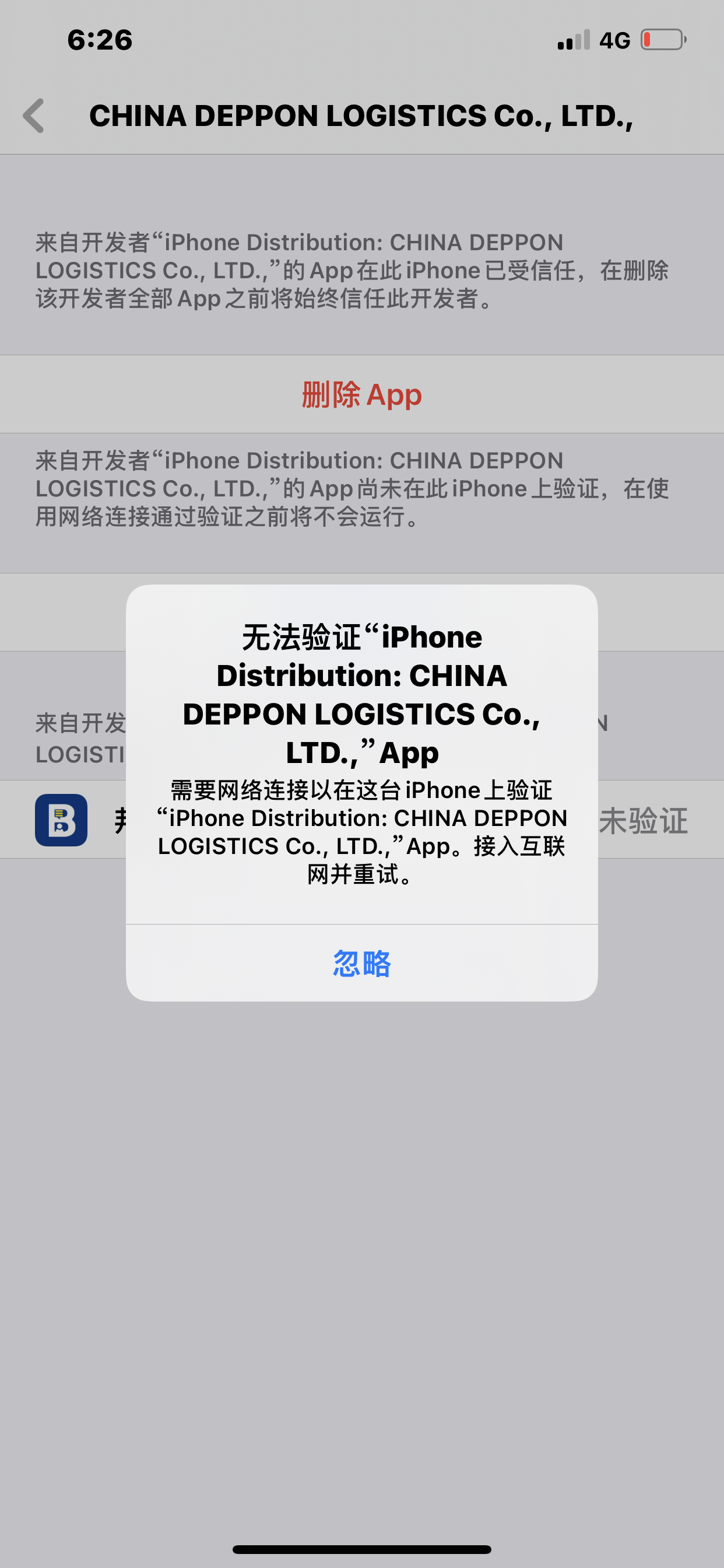 已受信任的企业级app信任过了验证失败一直显示网络验证错误