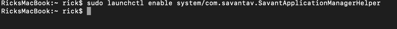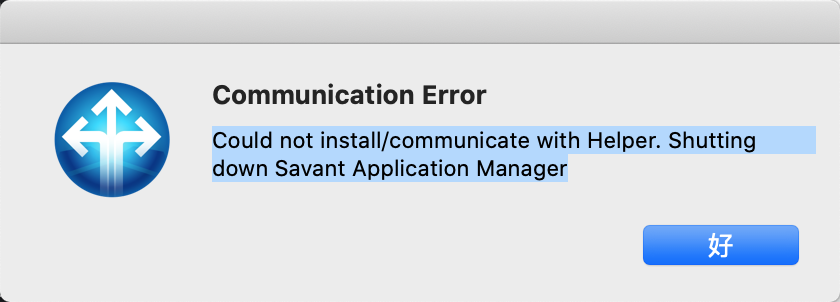 Could not install/communicate with Helper. Shutting down Savant Application Manager