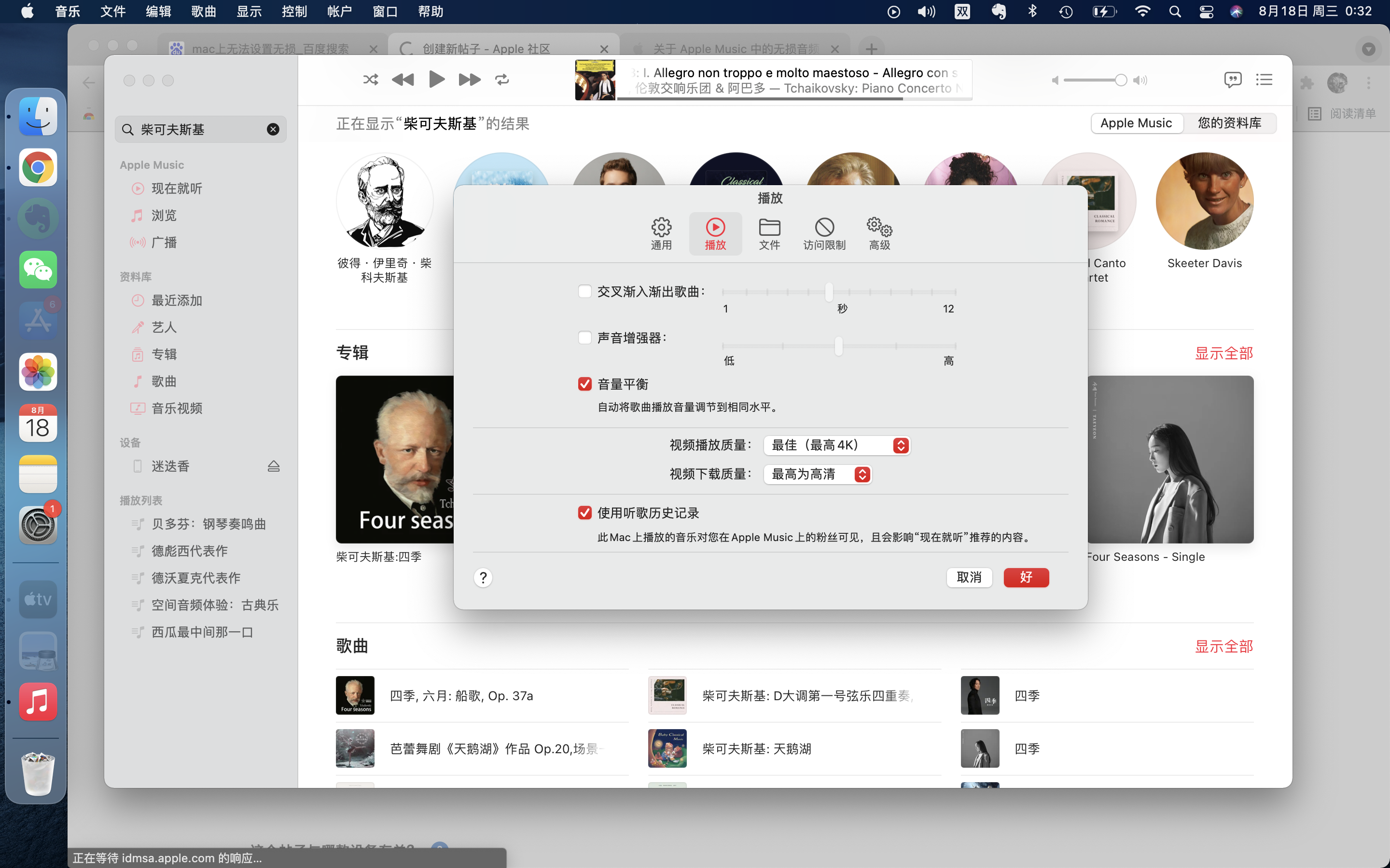 - 在菜单栏(屏幕顶部 旁边)中,选取“音乐”>“偏好设置”。