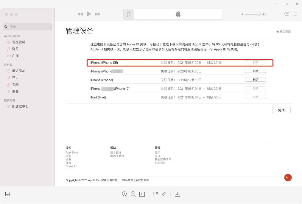 此图为我朋友Mac电脑音乐应用上的“管理设备”页面