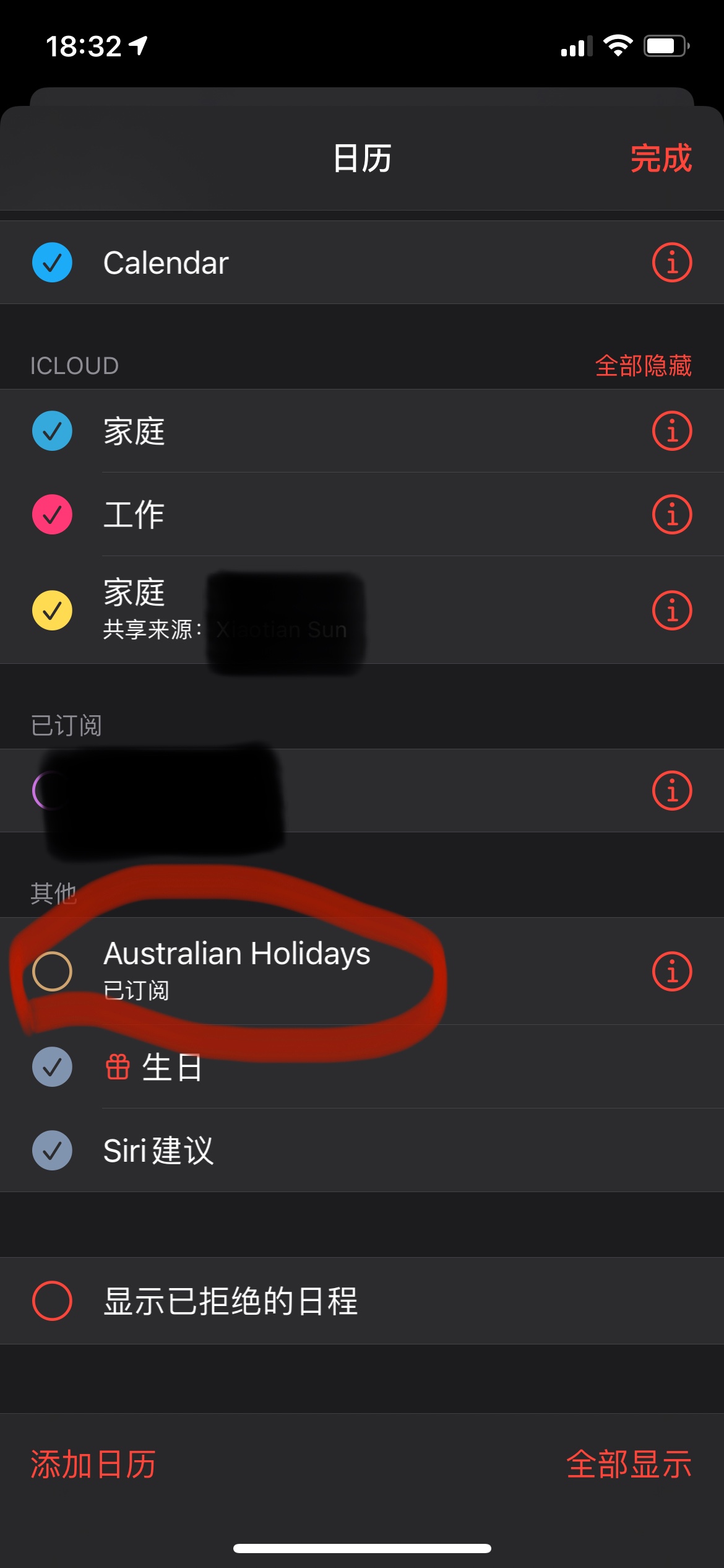 我也有这个问题。简单来说这个自带的澳洲节假日订阅删不掉,只能隐藏。这个澳洲节假日日历是在本地,不是云端。尝试过账户,icloud,设置-日历,都没有删除选项。