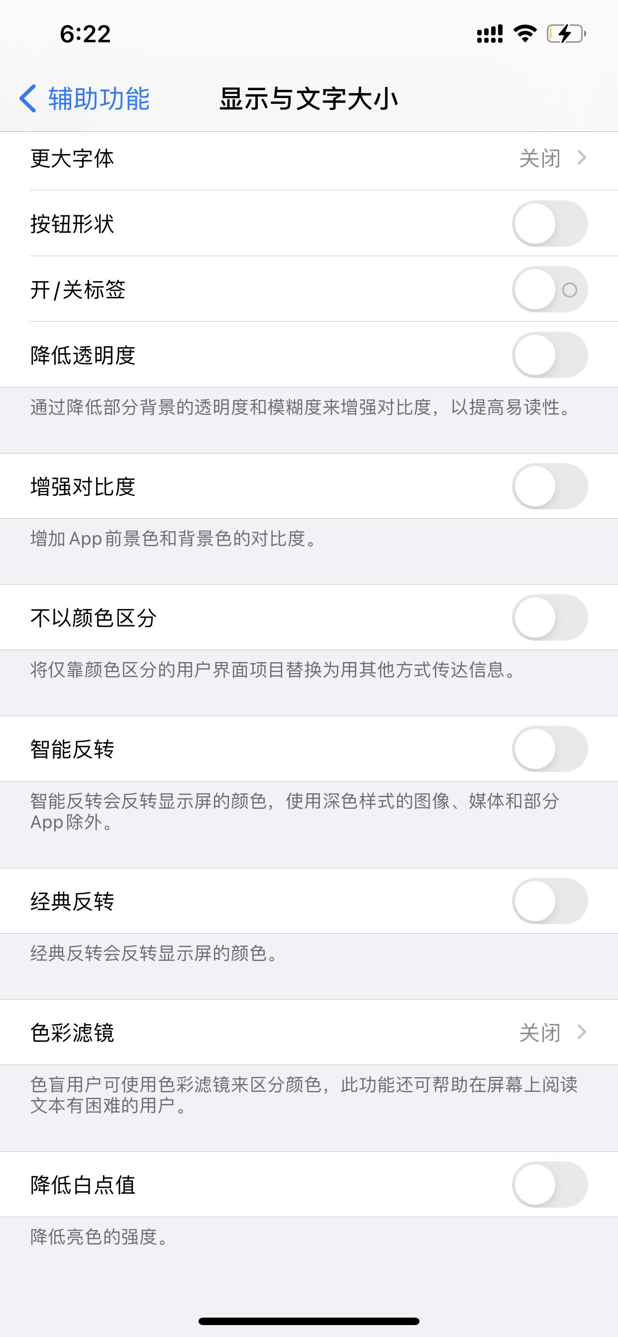 请您前往“设置”>“辅助功能”>“显示与文字大小”,将页面下滑,确认“降低白点值”下方是否有“自动亮度调节”的选项。(您可能需要在您截图的位置再向下滑动。)