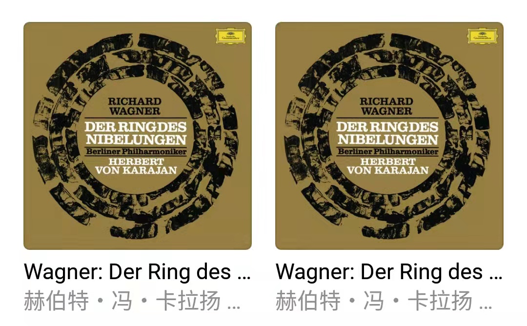 又比如这张合集:Wagner: Der Ring des Nibelungen (卡拉扬指挥),音轨4, 5, 9, 14等也会显示在另一张合集中,两者区别在于艺术家信息不同,一个是“卡拉扬 & 柏林爱乐”,另一个是“赫伯特·冯·卡拉扬 & Berliner Philharmoniker”。