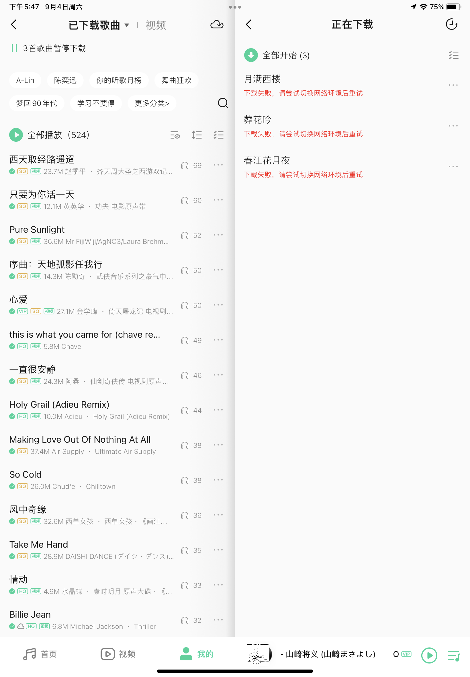 我的iPad在QQ音乐中无法在线播放音乐或者下载音乐