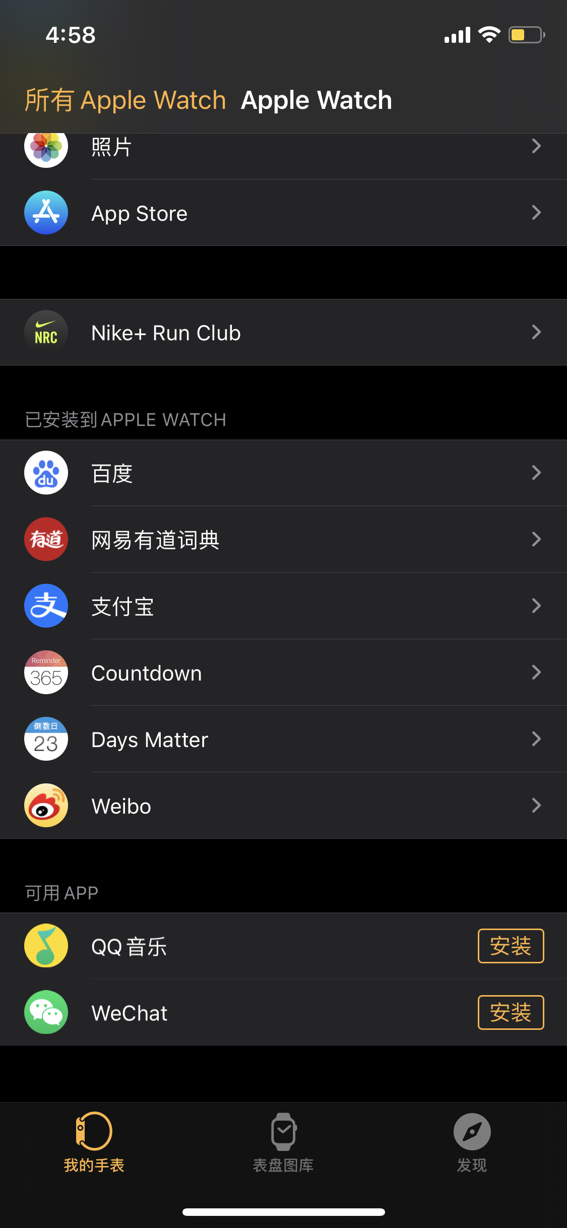 第一:在手机上备份一下软甲的资料信息,重新在app store 上下载,后面watch 上能显示安装再进行安装(比较麻烦,不太建议)