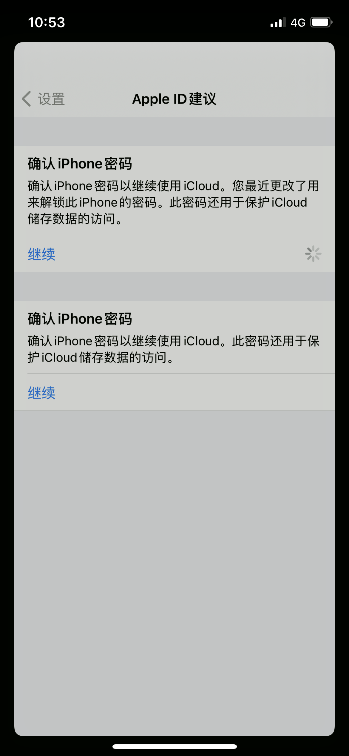 确认iphone密码 点继续后卡住,无法在icloud上下载文件