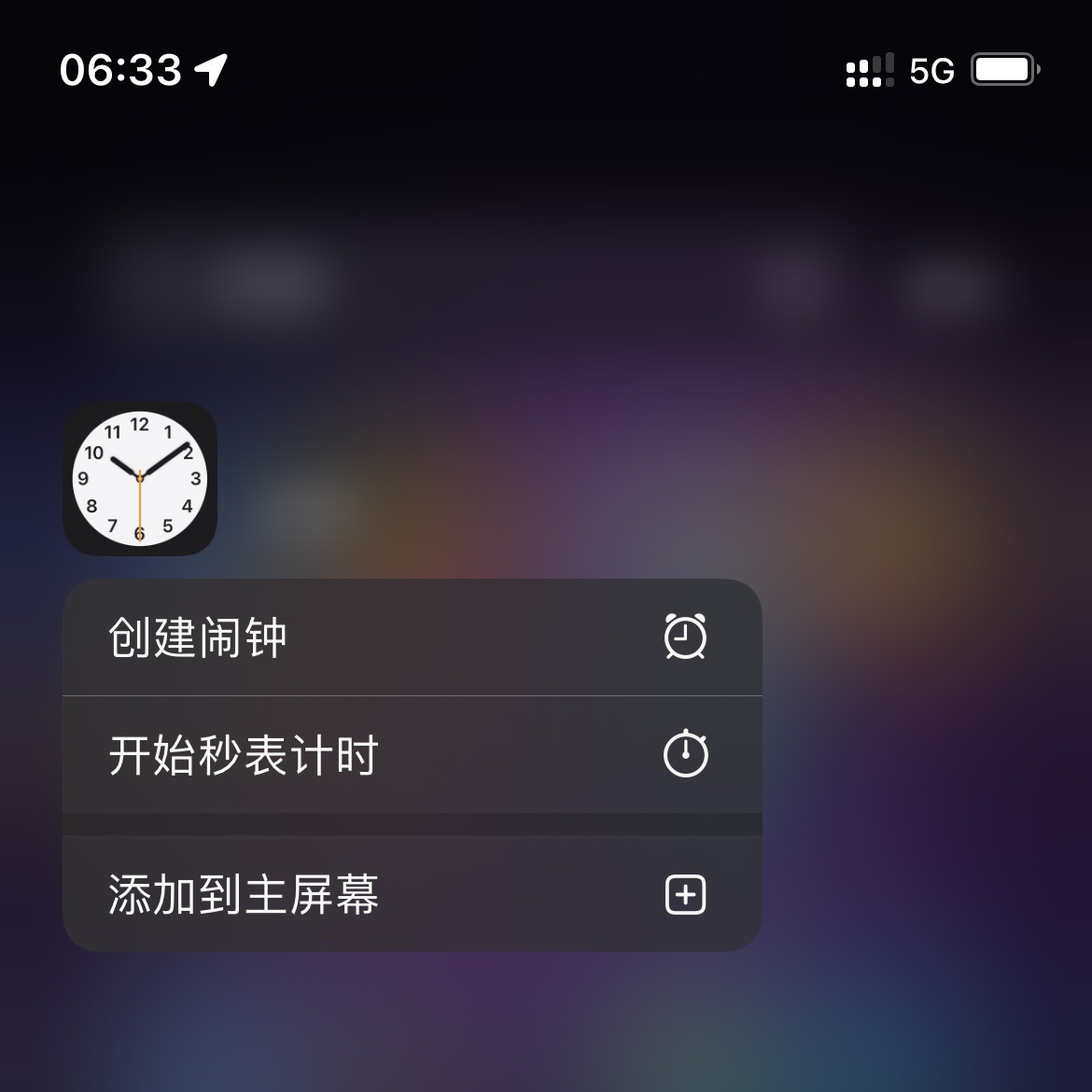 2. 在“时钟”App 的图标上长按,然后选择了“添加到主屏幕”