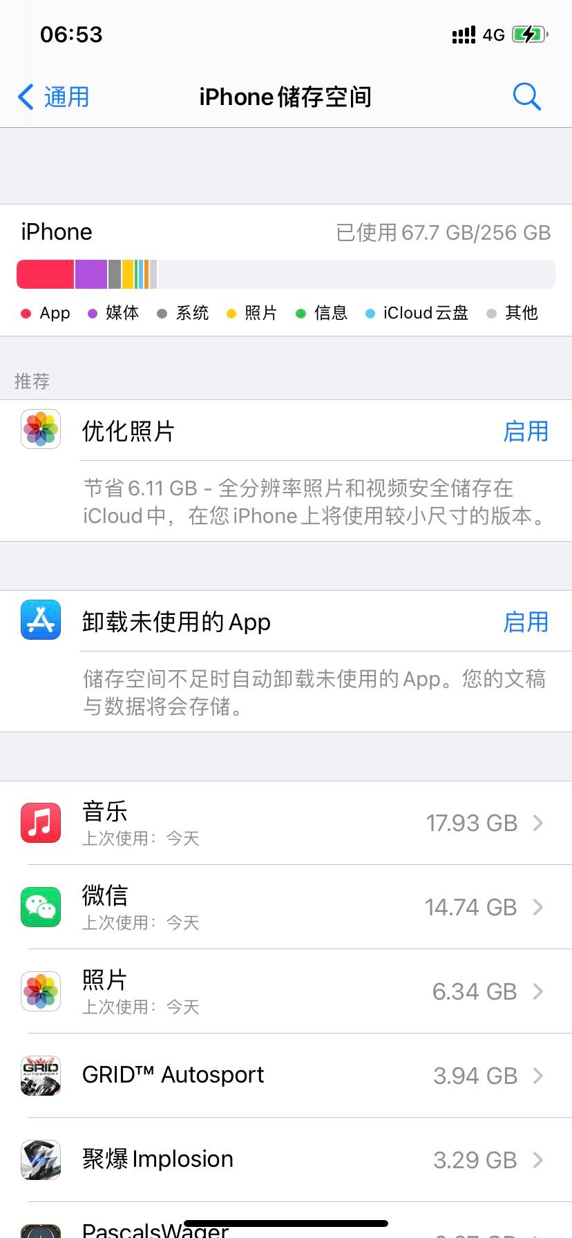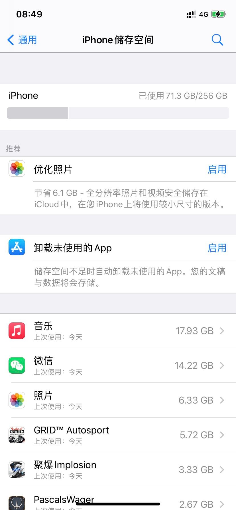 iPhone储存空间颜色都是灰的