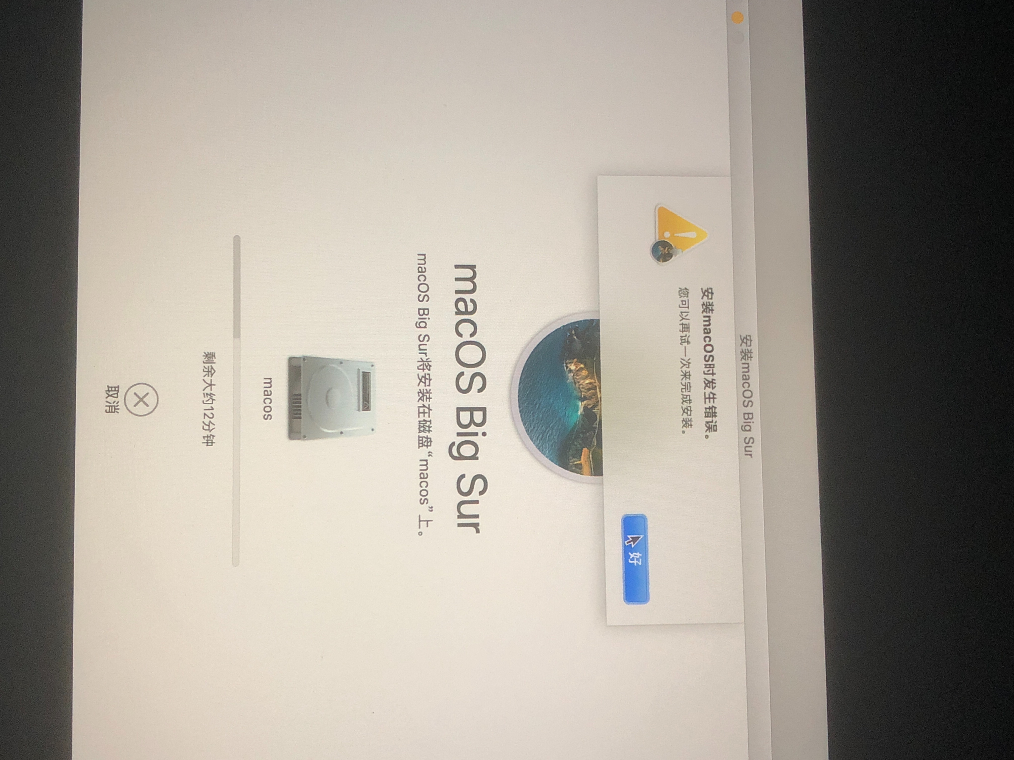 安装剩余大概10分钟时显示安装mac时发生错误 请再一次尝试
