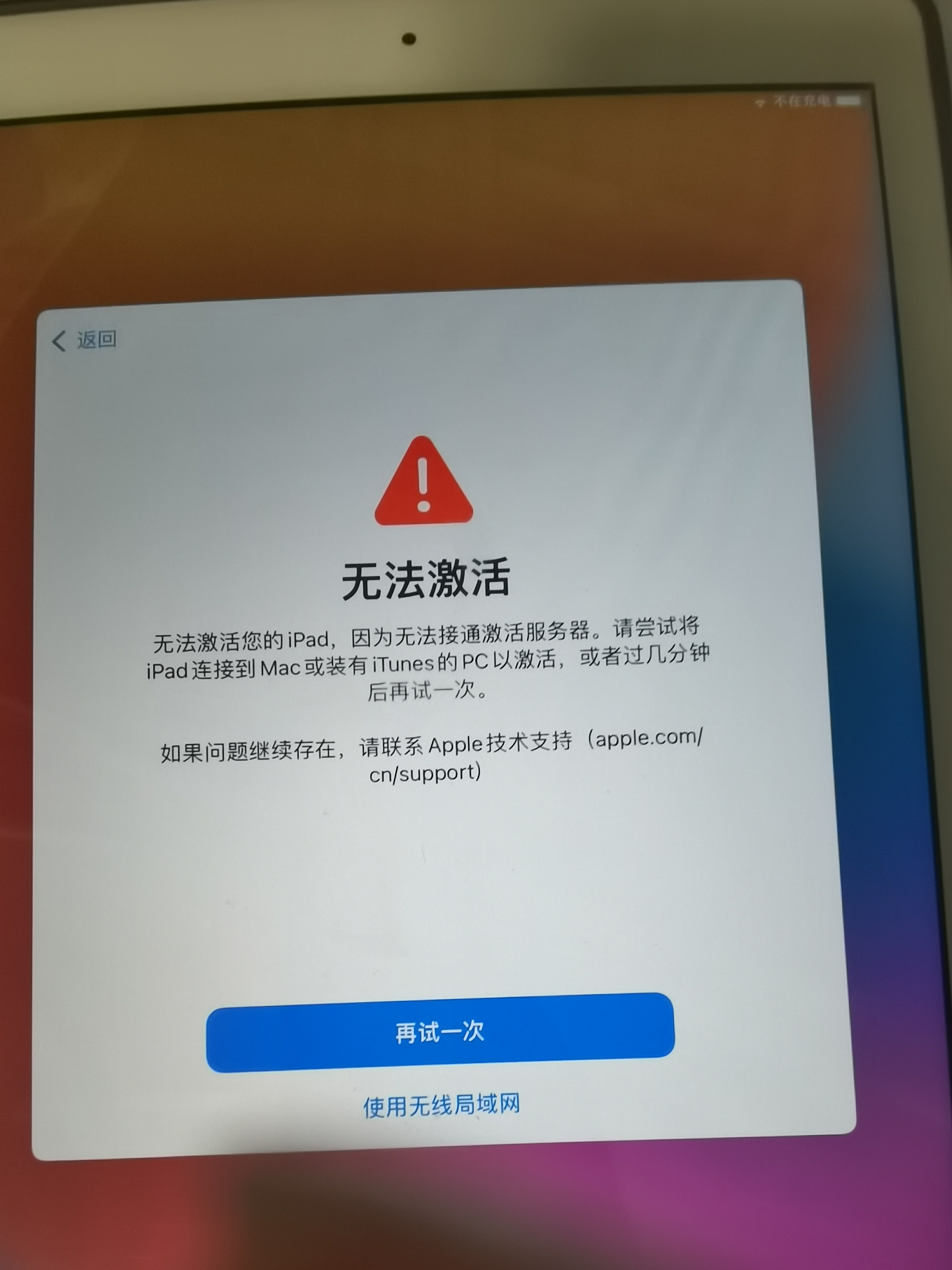 ipad 5代2017款,抹掉一切数据后无法激活