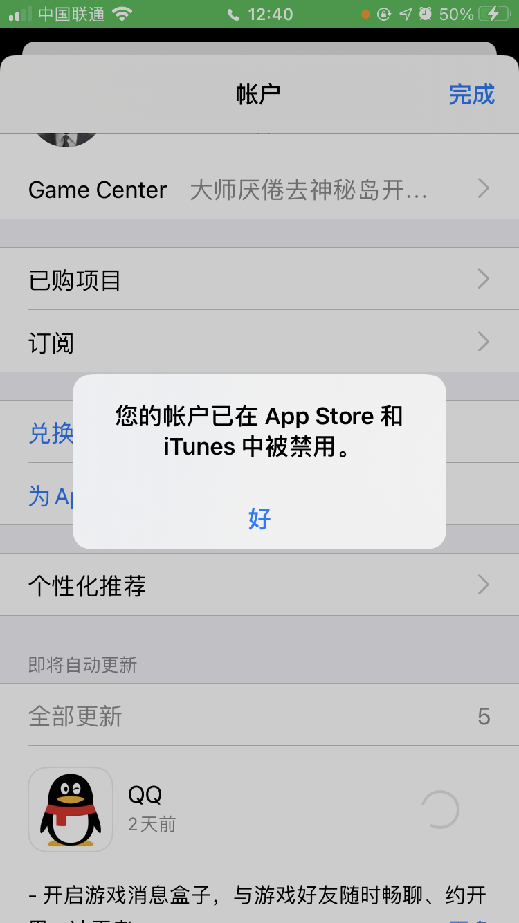 您的帐户已在 App Store 和 iTunes Store 中被停用