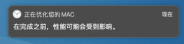 不知道大家是否注意到,刚刚升级完成后,它会提示如下图。这个和当初 Big Sur 初升级后一样一样的。我的丐版测试 MBA 就有该提示,过了一天就恢复正常了。但愿大家的也是这个原因。