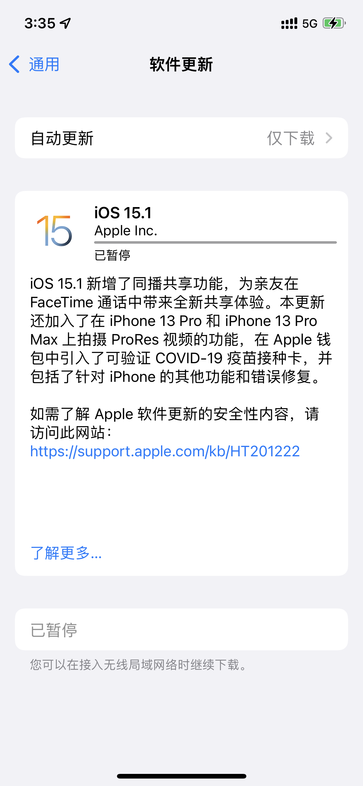 如图,我设置过了,之前用Wi-Fi更新到iOS15,现在更新到iOS15.1又遇到这个问题