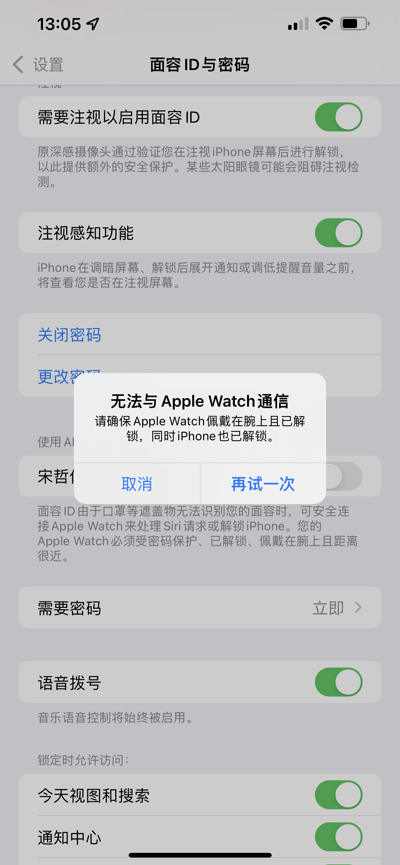 抹去还原applewatch数据,重新与iPhone13promax配对也无法通过applewatch解锁iphone,也就意味着戴口罩或面部遮挡无法解锁iPhone,显示无法与applewatch通信!不知道有和我一样的情况的朋友没?