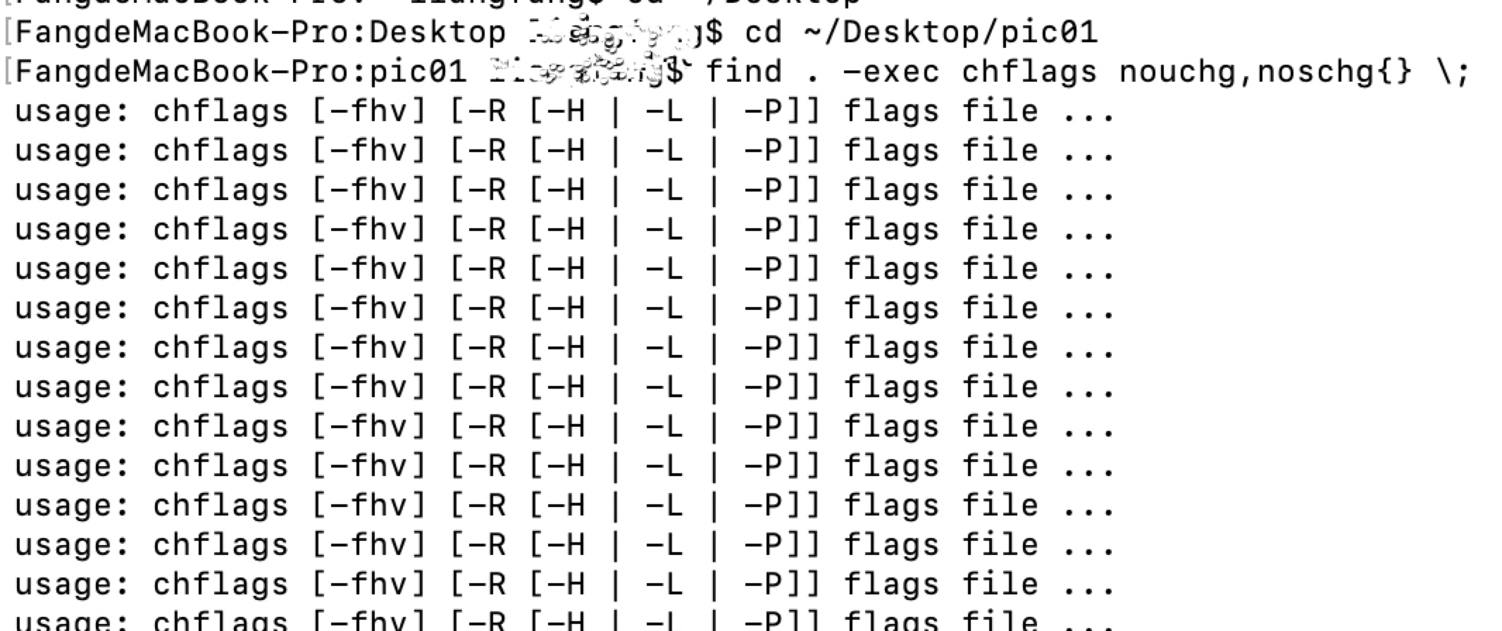 那是因为命令错了 noschg 和 { 之间必须有个空格。命令行中的空格是关键因素,不得马虎。