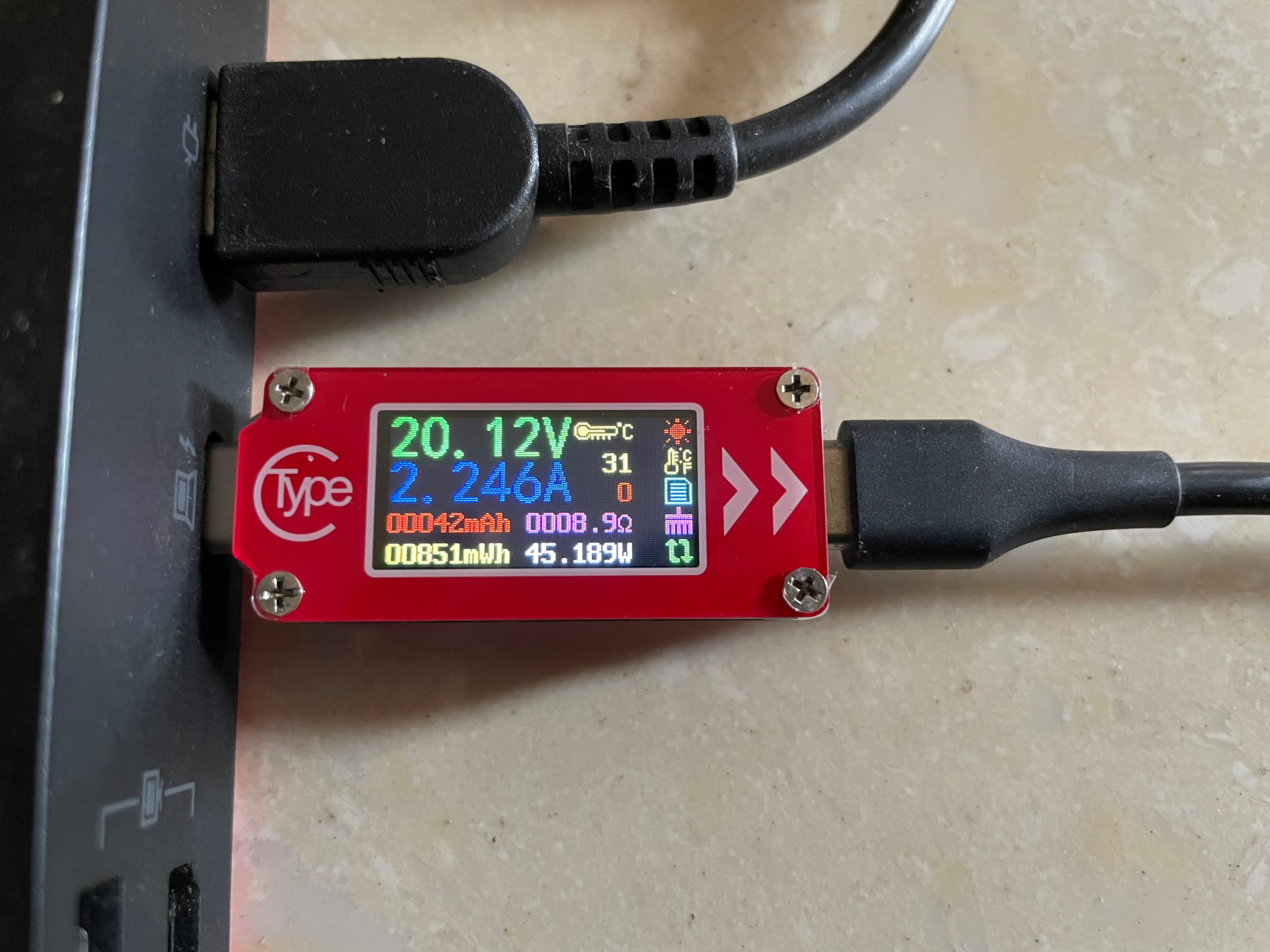 第一个问题没实际测试过,平时在家用 100W 扩展坞,在外带 20W 或者 30W 适配器。
