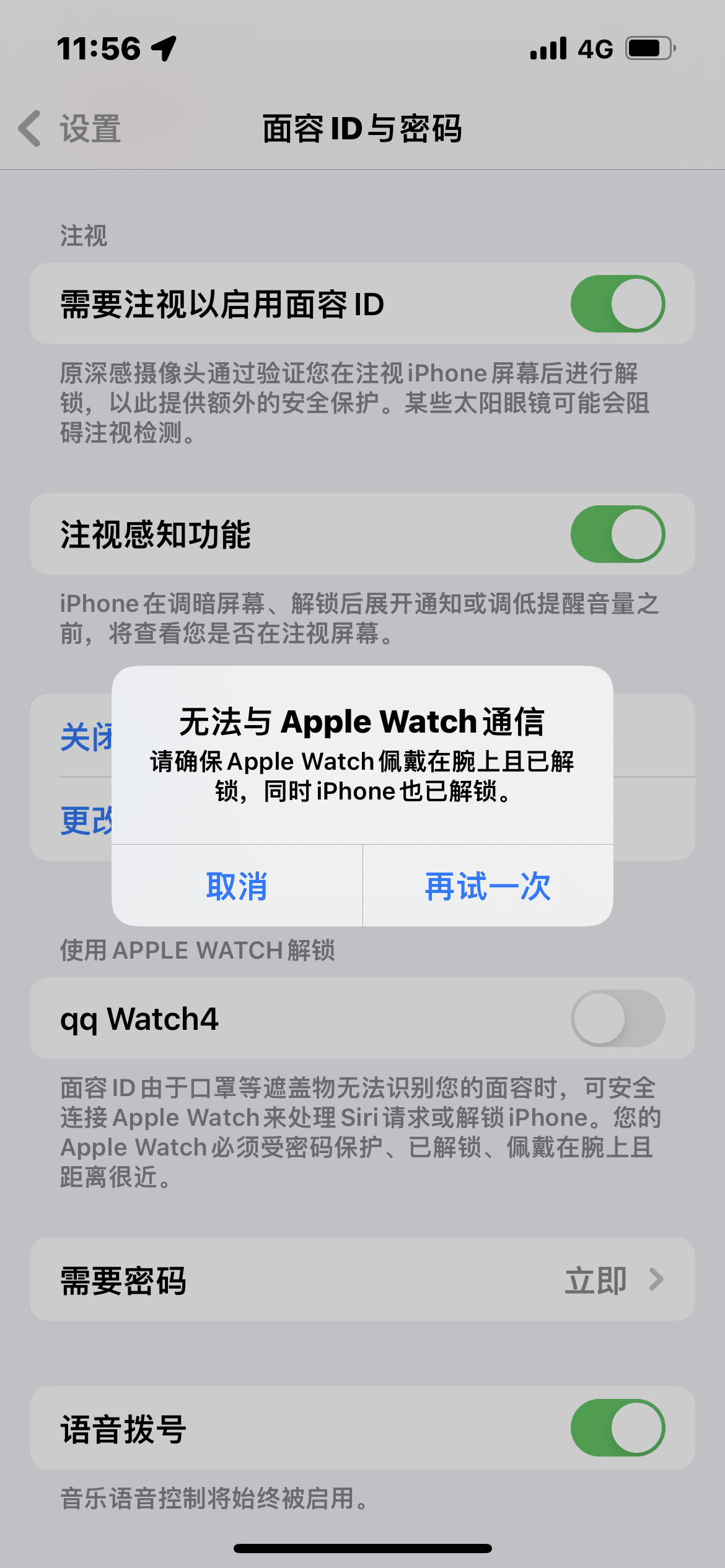 戴着口罩或太阳镜时使用 Apple Watch 解锁 iPhone