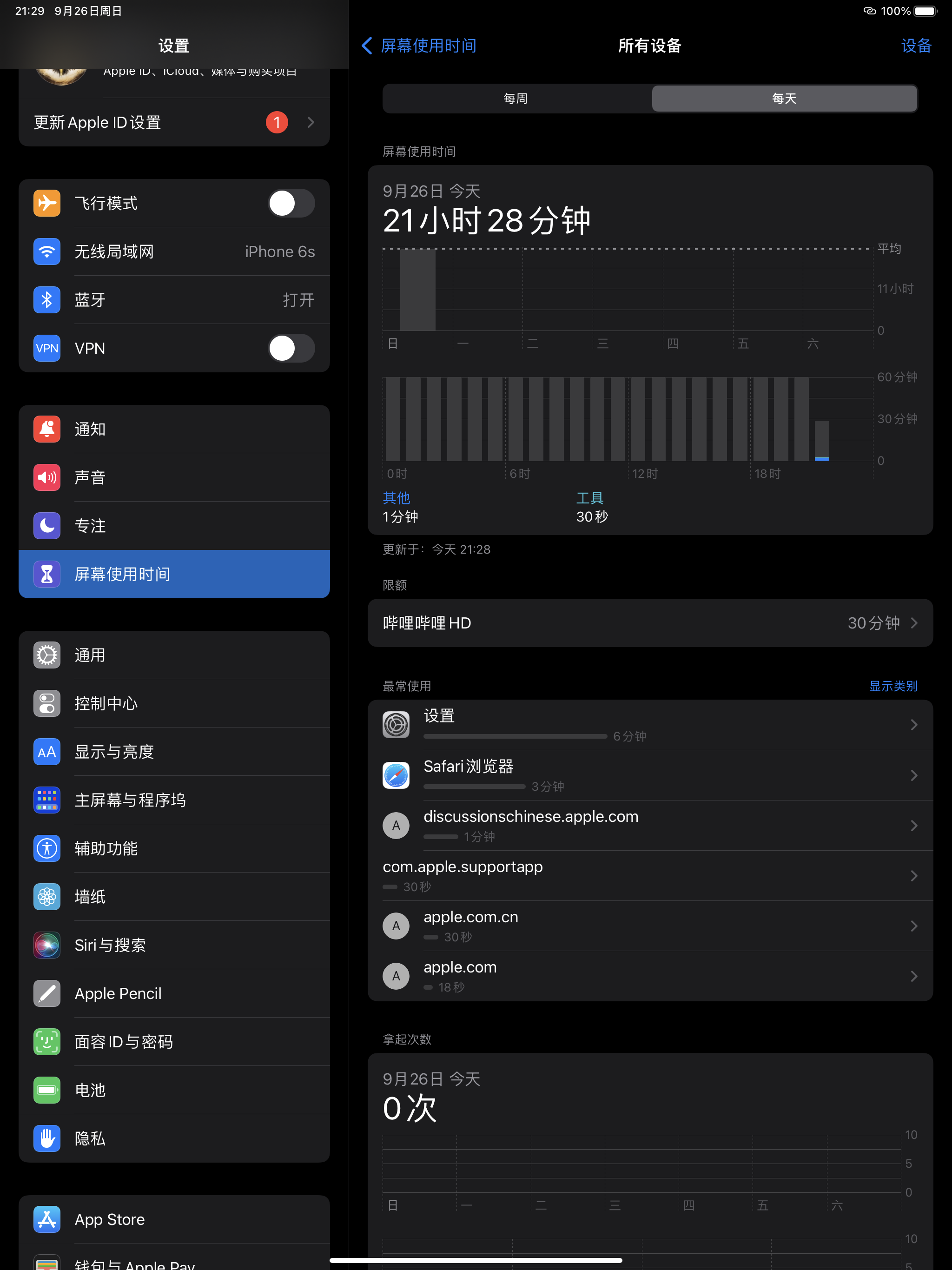 最近使用的iPad pro 屏幕使用时间非常长,但是实际根本没有使用,平板处于放置状态。经查看有非常多的灰色时间,请问一下是怎么回事呢?.系统是Ipados15
