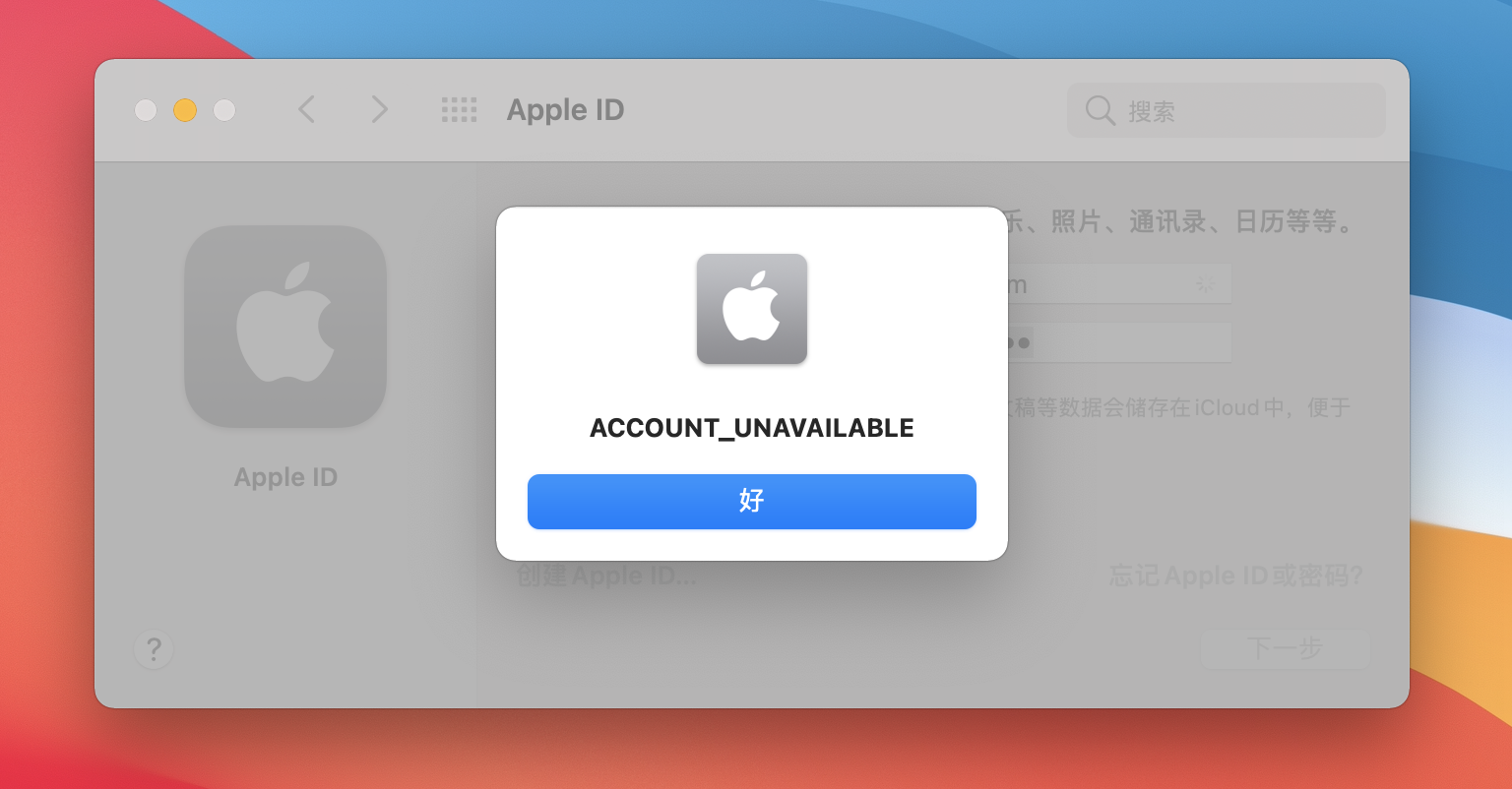 MacBook pro重新安装系统后无法登陆Apple ID,当前版本11.6,网络也没有问题,尝试多次均无法登陆