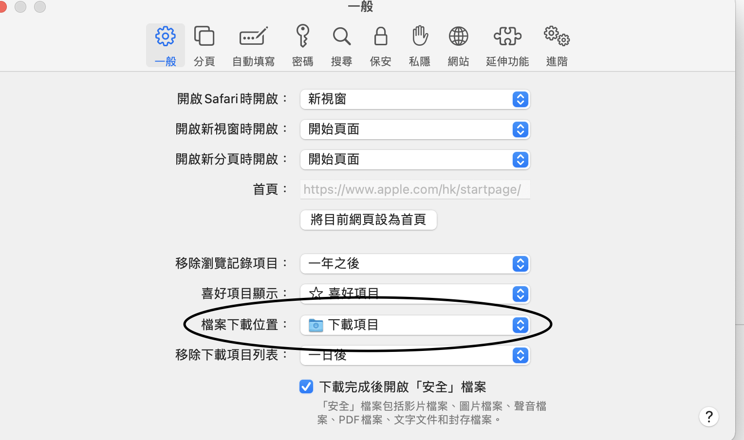 确认 Safari 设置中的 “下载文件夹”是指向的你的“下载文件夹”