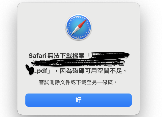 更新后safari下载文件,显示磁碟可用空间不足,但我看电脑有足够内存,下载路径的文件夹也是可读取和输入的,所以是什么问题造成的?要如何解决?