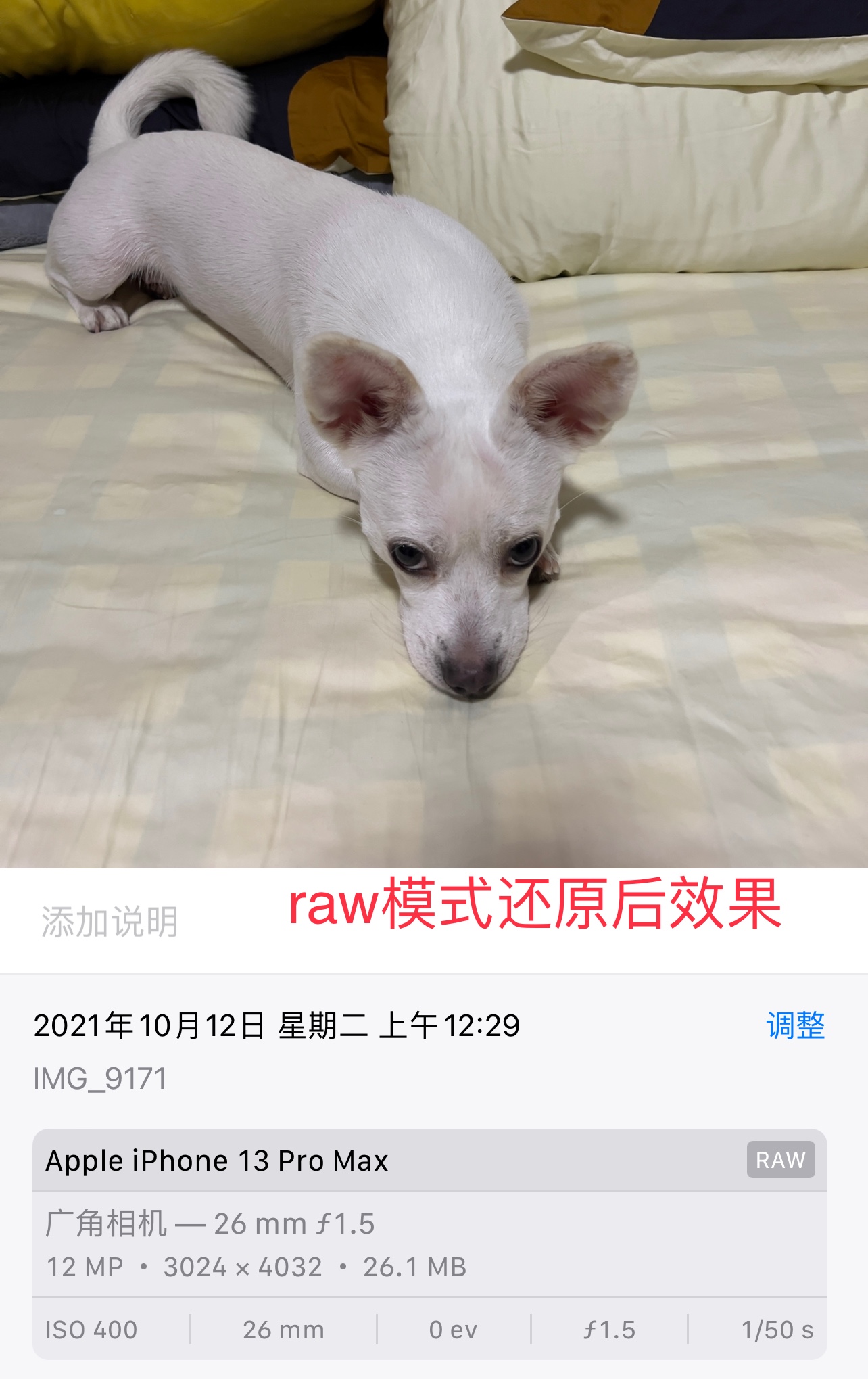 在各大平台上搜索了一些方法,都无法彻底解决这个问题,目前采用raw模式拍摄出来的直接效果还是锐化过度的处理后效果,需要在相册中调整中查看真实raw效果,然后裁剪或者改变某个参数再改回去后是正常效果。对比示意图如下: