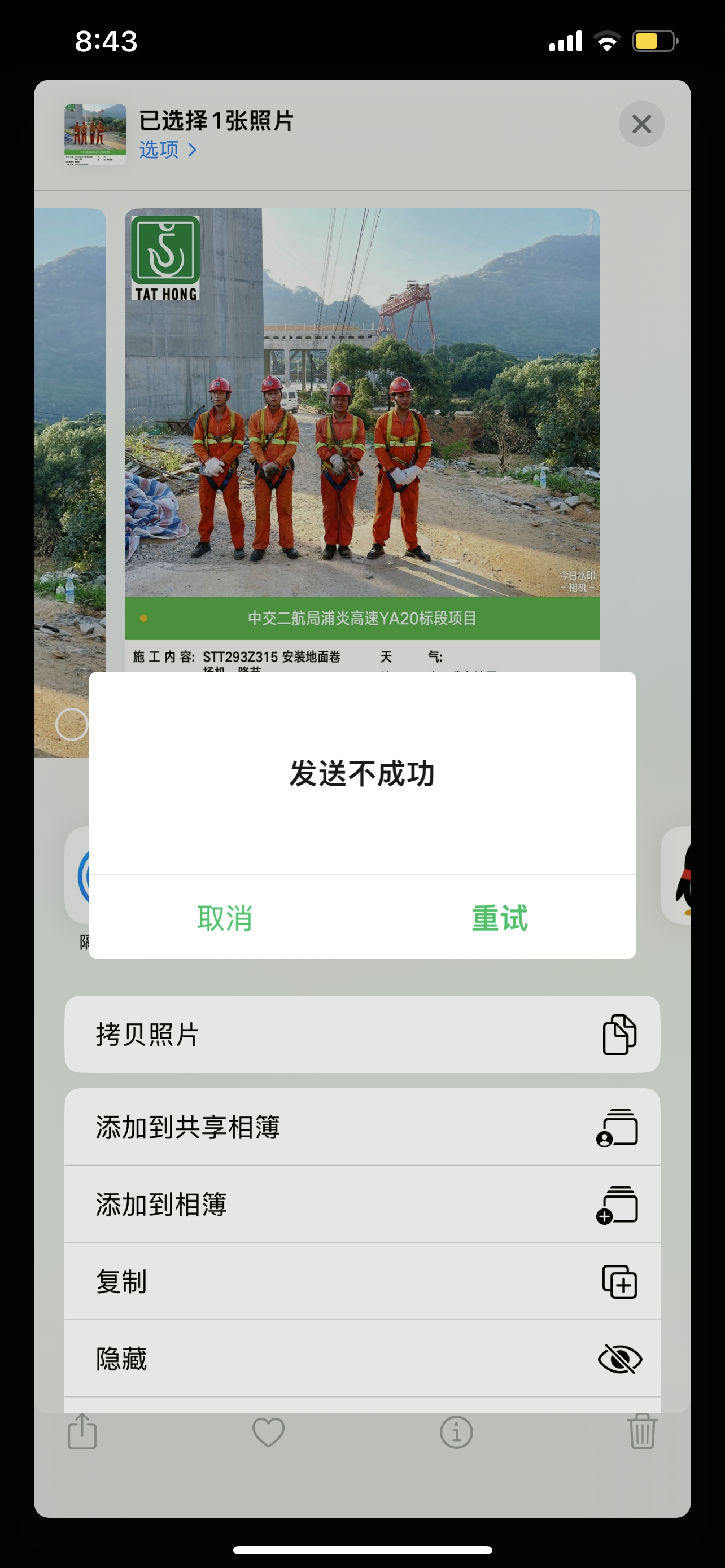 微信发图片问题 相册直接发图片去微信好友发不走 卡顿并显示隐臧