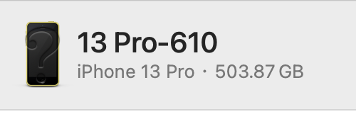 新买的iPhone 13 Pro,从iPhone 12 Pro导完资料后,访达里显示的iPhone一直是一个带问号的图标。不知道什么原因,目前来看新手机使用正常,也不影响传输数据,就不知道什么时候能恢复正常。