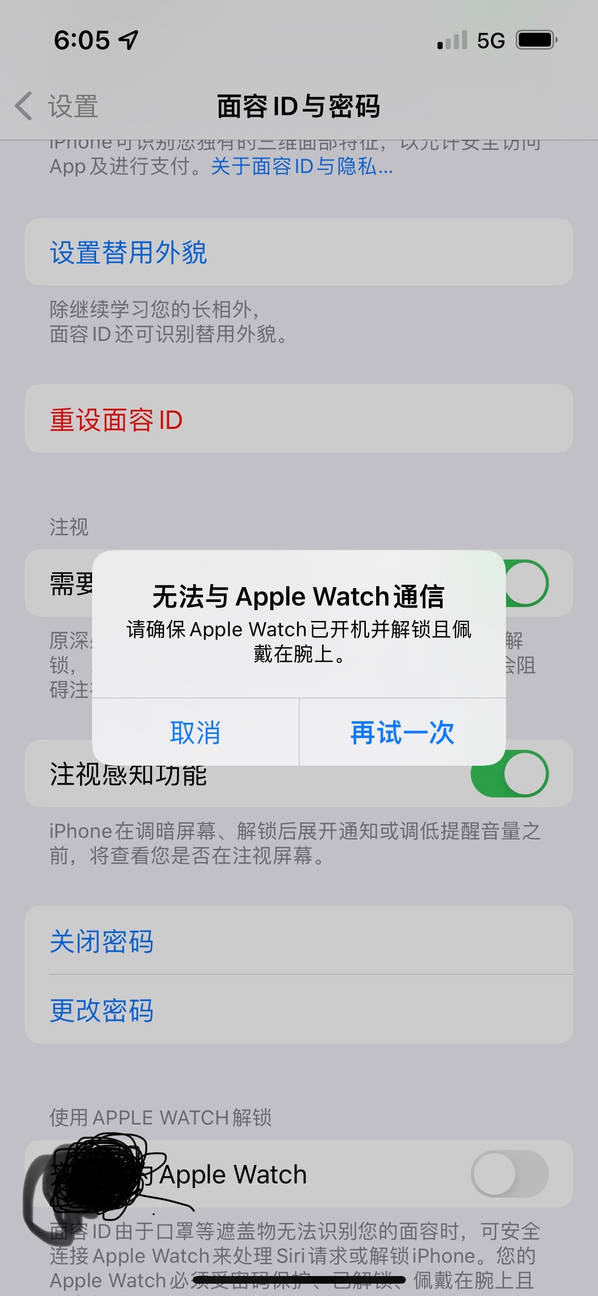 更新15.0.1版本后依旧无法使用Apple Watch解锁,不清楚什么情况