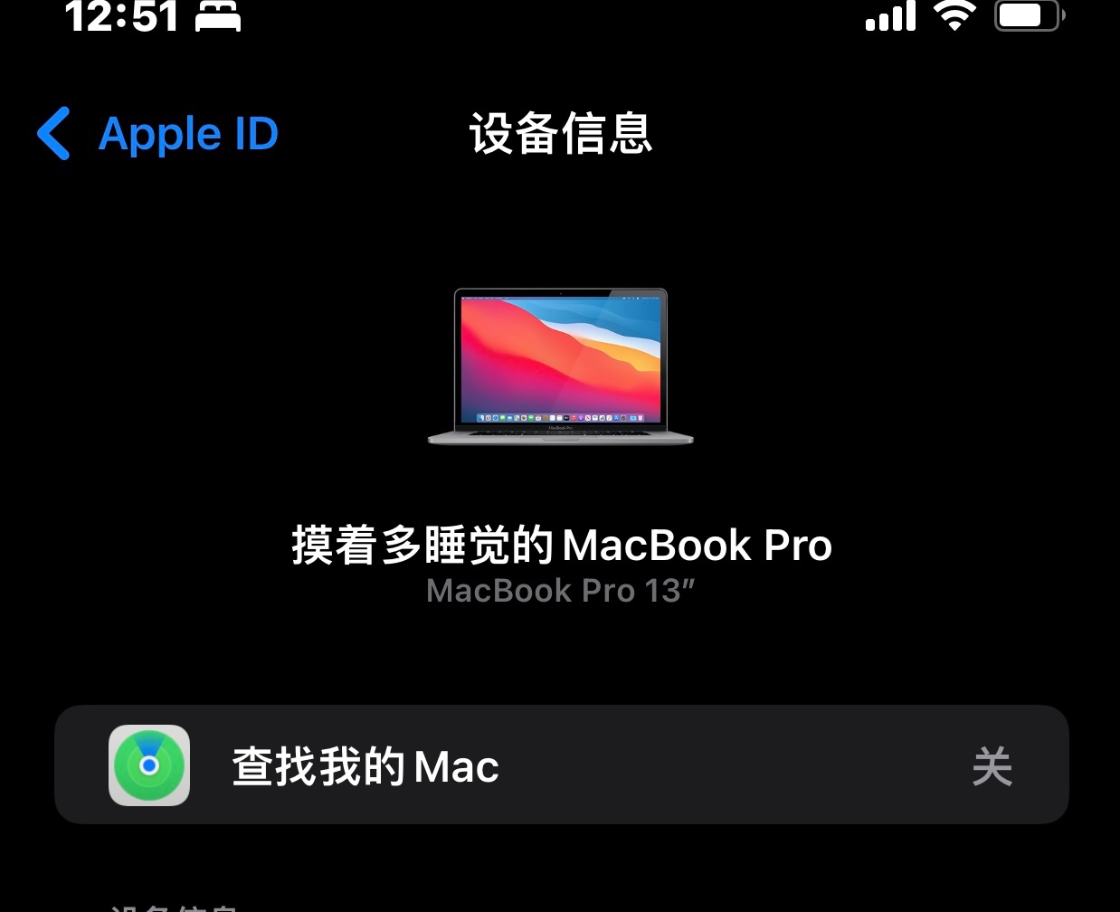 MacBookpro 2020款在手机上的查找我的mac显示关