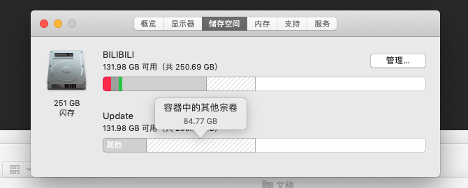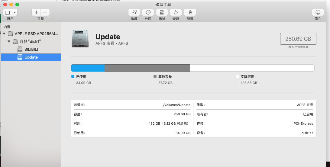 以下用户的用户个人资料: tonyfromcalgary tonyfromcalgary 用户级别: 级别 6 16,084 积分 2021年10月9日 下午4:12 回应 社区用户 既然是 11 的 Big Sur 那么先确认升级到最新的 macOS 版本,现在是11.6。如果不是安装出现了问题,那么,如果 Update 中的数据可以删除或者已经备份完,在磁盘工具中直接把它删除,剩余出来的空间会自动变为可用空间。另外,看贴图中的显示,怎么看都有点不对劲,运行下面的命令把输出贴上来看看:diskutil list 回复 链接