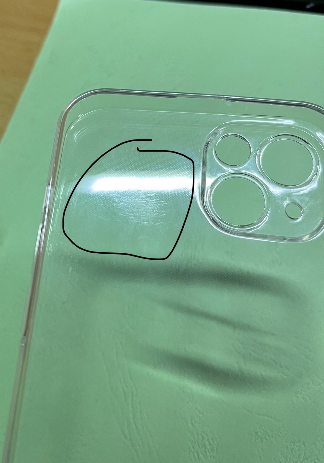 我现在贴了张后背钢化膜,不过我回家的时候,可以把之前的苹果8后盖拍给你看,和13后盖玻璃上是一样的情况。像你说的一样。