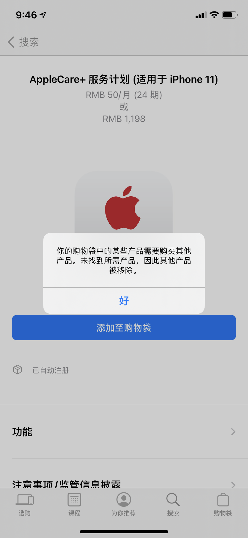 无法在 Apple Store 在线商店单独购买 AppleCare+,只能在购买手机的时候一起买。