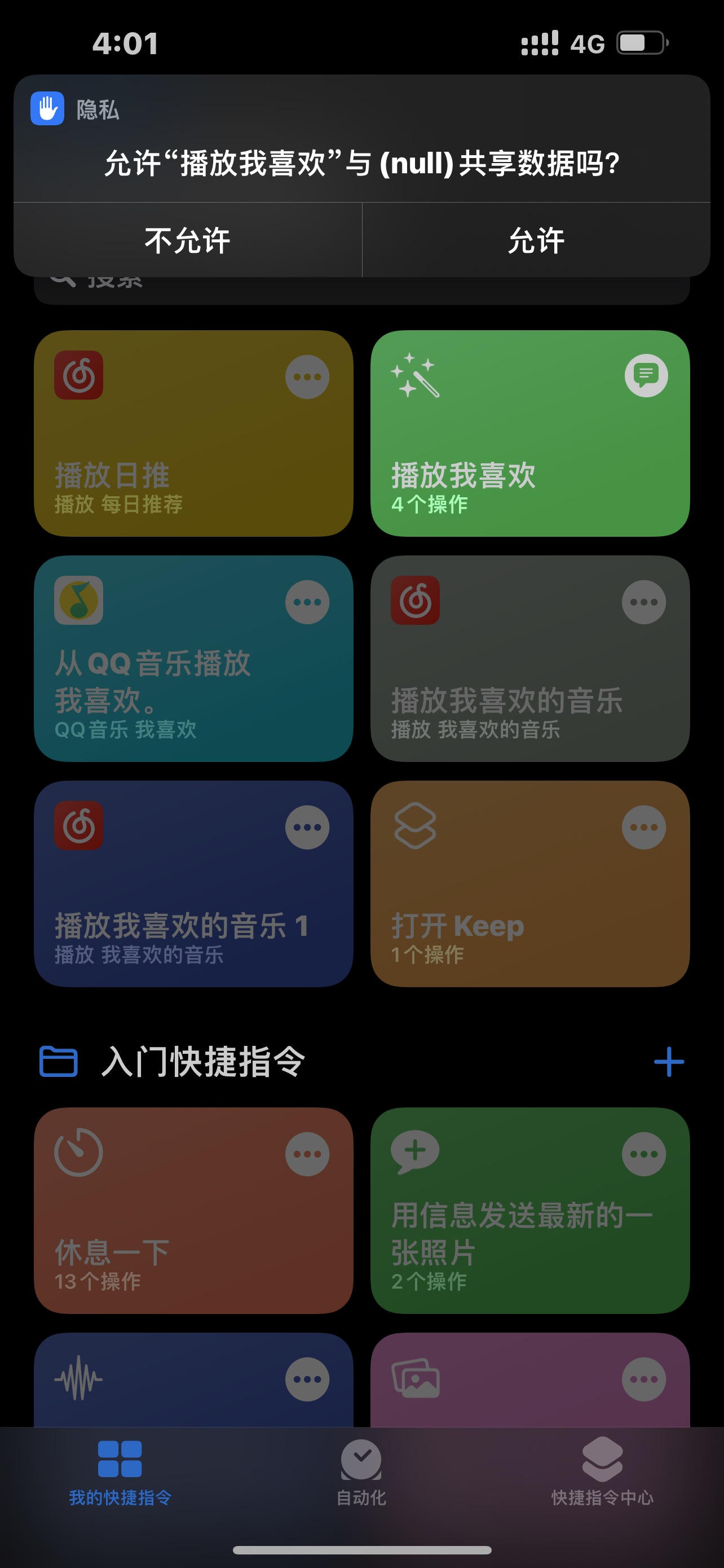 锁屏的时候用siri直接从qq音乐播放喜欢列表里面的歌无法执行,会跳出privacy问我要不要允许与null共享数据 点击允许之后让我解锁iPhone 解锁之后也并不会执行我从qq音乐播放喜欢列表里面的歌的指令。之前的手机是可以在锁屏状态下用siri控制播放qq音乐的歌的