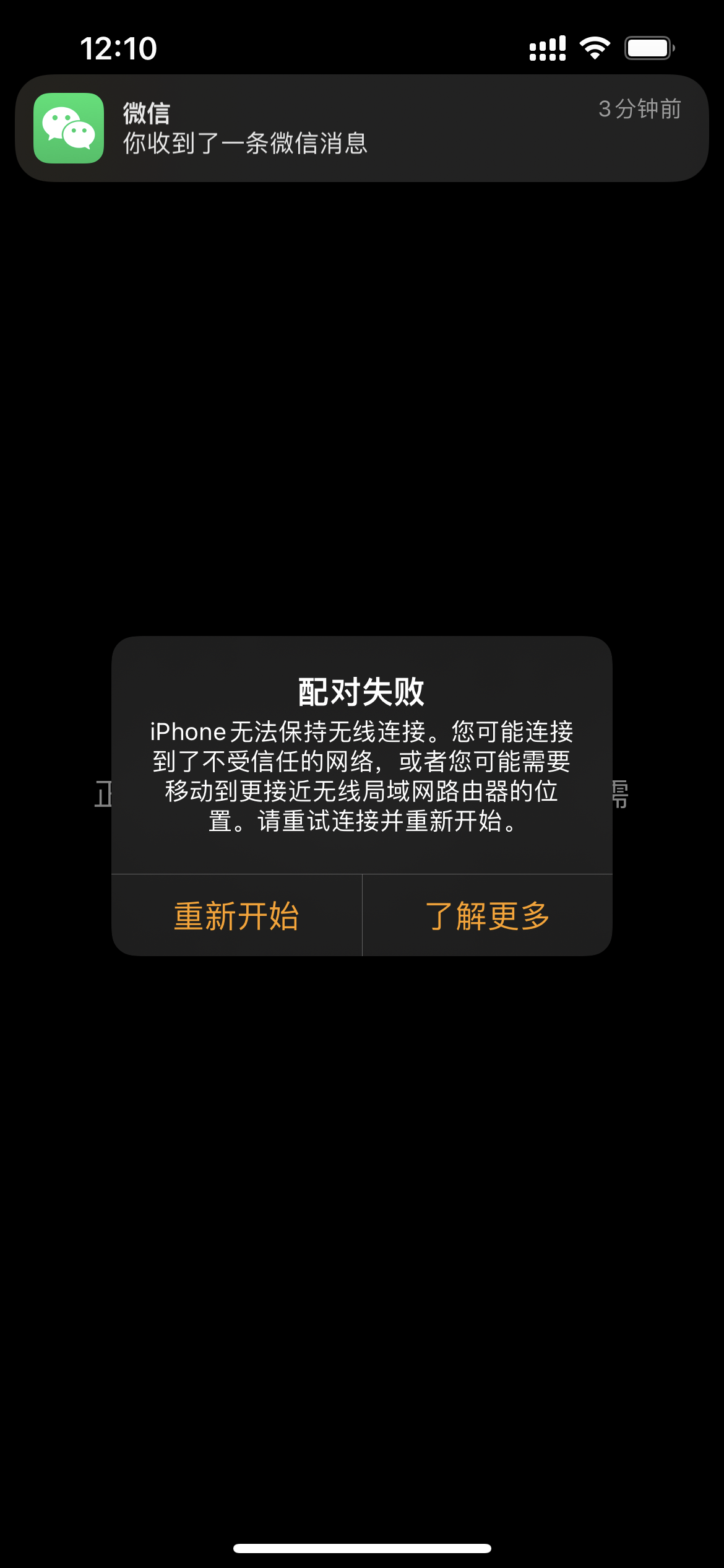 更换手机后,iPhone上提示watch无网络,提示配对失败。关机好多次都没用;手机和手表都是最新系统。