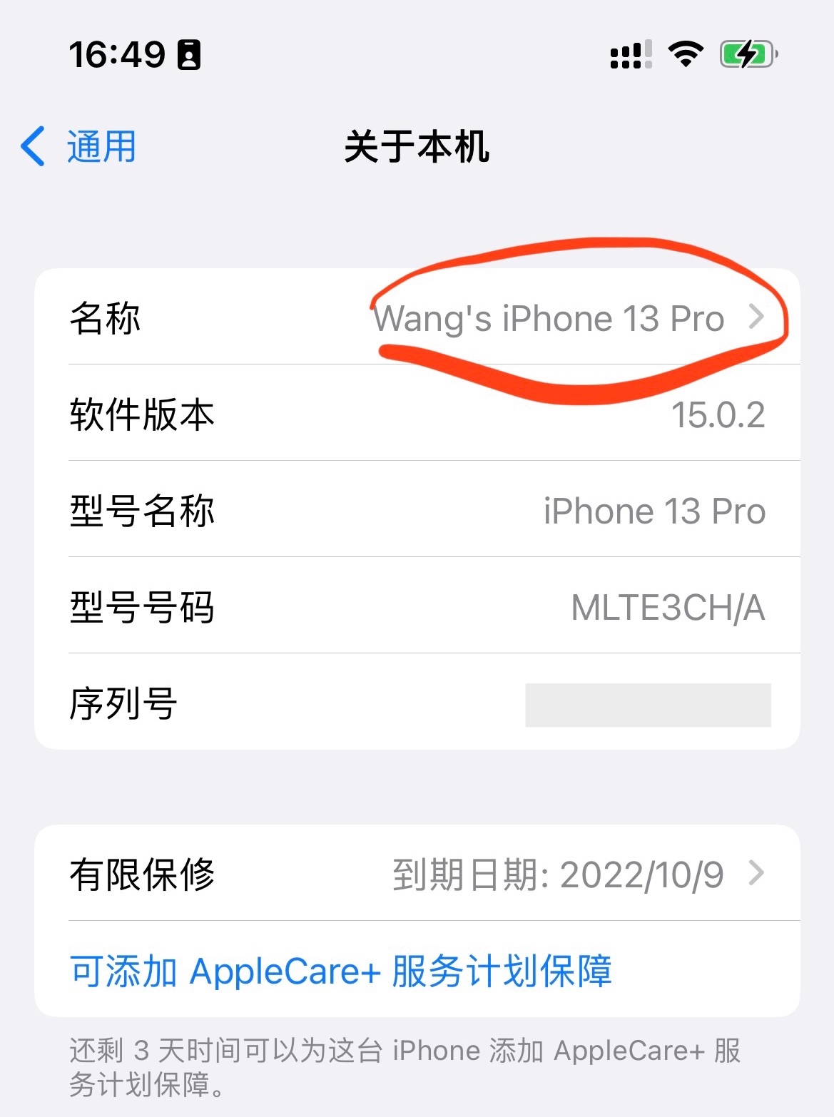 补充:如图,这台手机名字就叫我的iPhone 13 Pro,不是命名的问题。那台X是我之前用的手机。