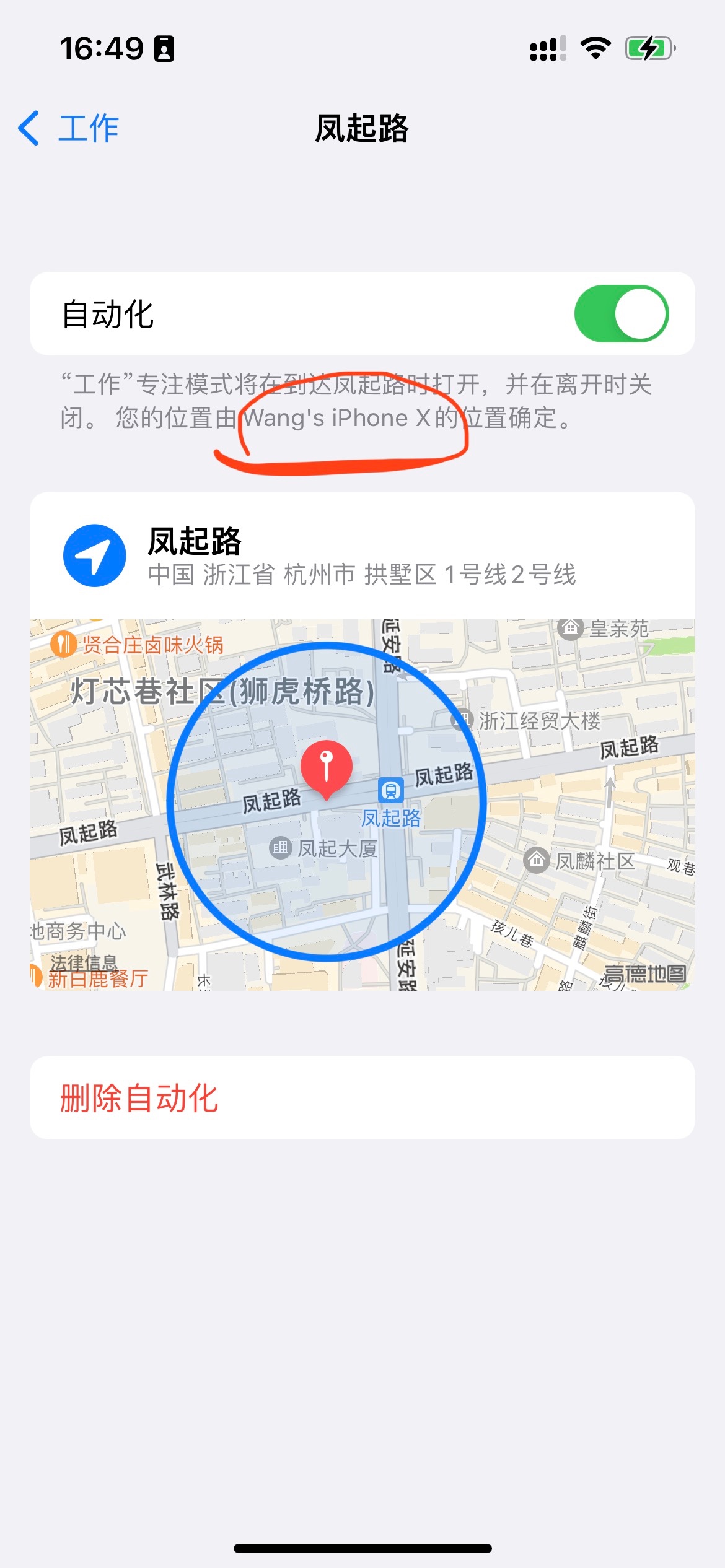 前几天我上班的时候想到,可以根据位置让它自动打开“工作”的专注模式,就试了一下。结果它居然显示我的位置是用我的iPhone X确定的,而不是这台13 Pro。起初我以为只是显示bug,但是用了两天发现我来到这个定位的时候,专注模式确实不会自动打开。这是为什么?
